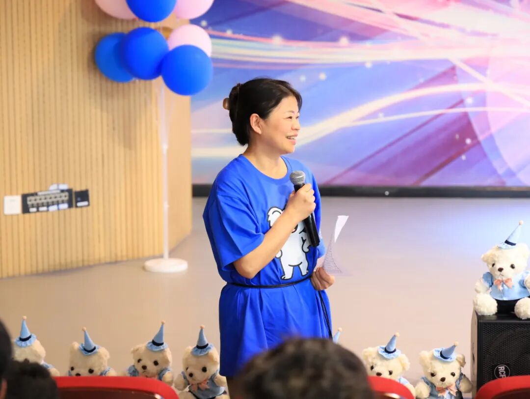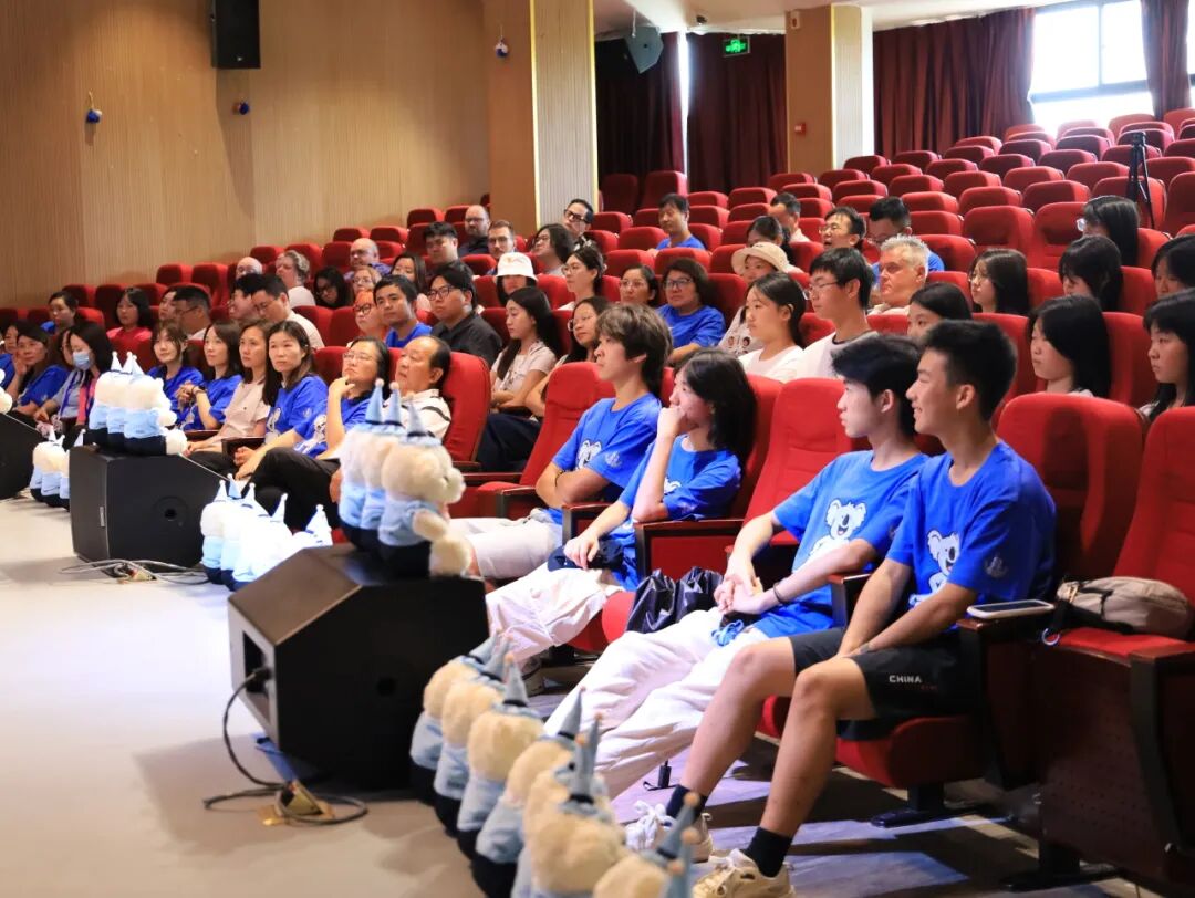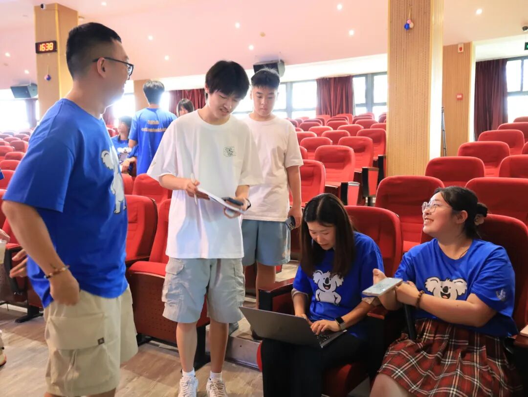 At 3 PM, the students—all dressed in camp T-shirts designed by their seniors—gathered neatly in the auditorium. The opening ceremony was co-hosted by Vice Principal Ms. Ma and Principal Assistant Ms. Wang. Principal Chris then took the stage, breaking the ice with lighthearted humor that quickly bridged the gap between teachers and students, eliciting frequent laughter and applause. Following his speech, senior students Jiang and Xie shared their experiences, encouraging the newcomers to actively engage and embrace new challenges.