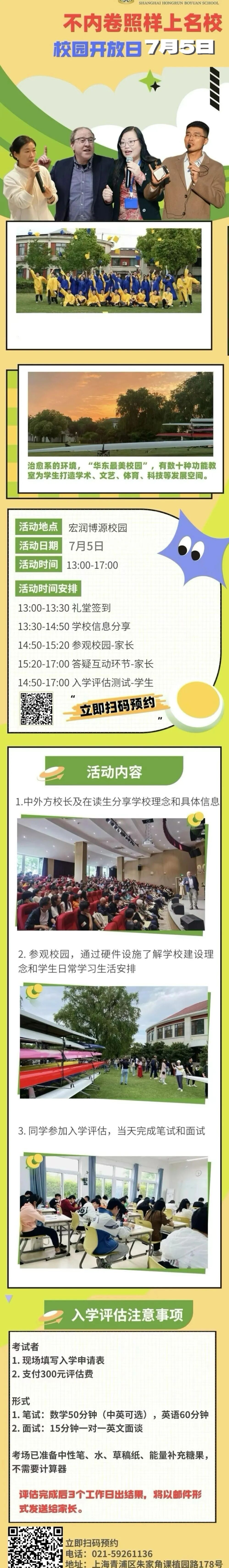 开放日可选日期7月5日、7月26日,开始时间为13:30,欢迎扫码报名参加,具体安排如下: