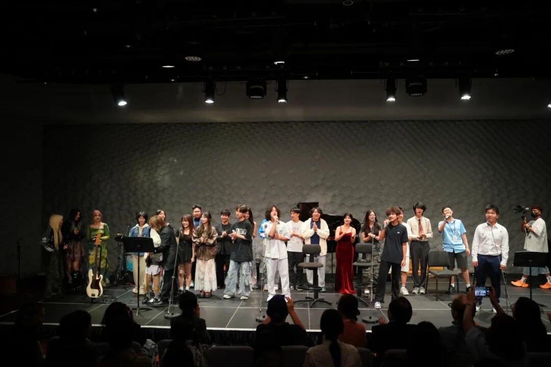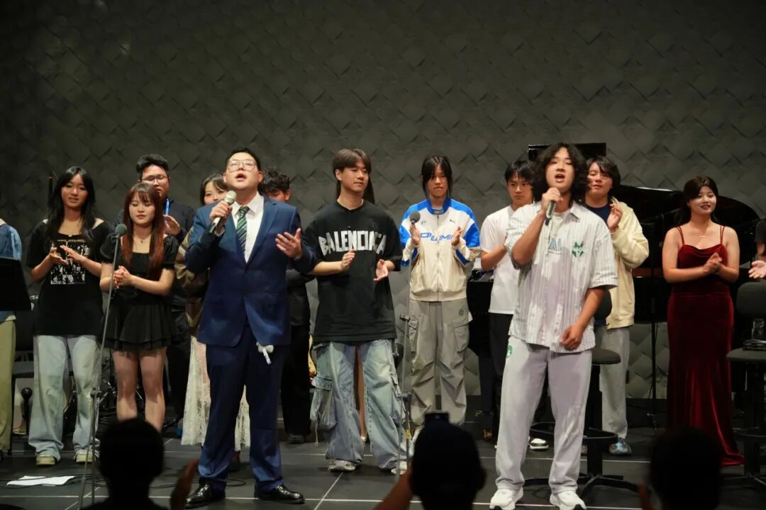 音乐会现场,创意与激情交融,才华与梦想齐飞。从古典的隽永到现代的灵动,钢琴、弦乐、电子音乐、摇滚、说唱等多种形式交织,为观众带来了一场无与伦比的视听盛宴。当经典咏叹调《Nel cor piu non mi sento》的旋律流淌而出,师生间日复一日的雕琢与默契在那一刻升华,老师指尖弹奏着古典时期风格的伴奏,引领着学生的情感精准抵达每个音符;在《Why we sing》、《Holy Forever》等作品中,老师不再是讲台上的传授者,而是融入合唱伴奏的同行者,师生共同以歌声和琴声诠释对音乐的赤诚,那份在排练厅里无数次磨合的和谐,在舞台上化作震撼人心的共鸣。学子们用音符描绘未来图景,用旋律讲述成长故事,多元的音乐风格跨越文化边界,呈现了一场精彩纷呈的艺术对话。现场掌声雷动,观众们深深沉浸在音乐的魅力之中,为这群年轻音乐人的才华所折服,更被这份流淌在舞台上的师生情谊所打动。