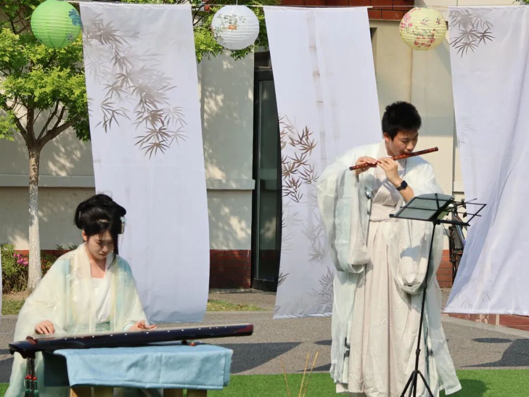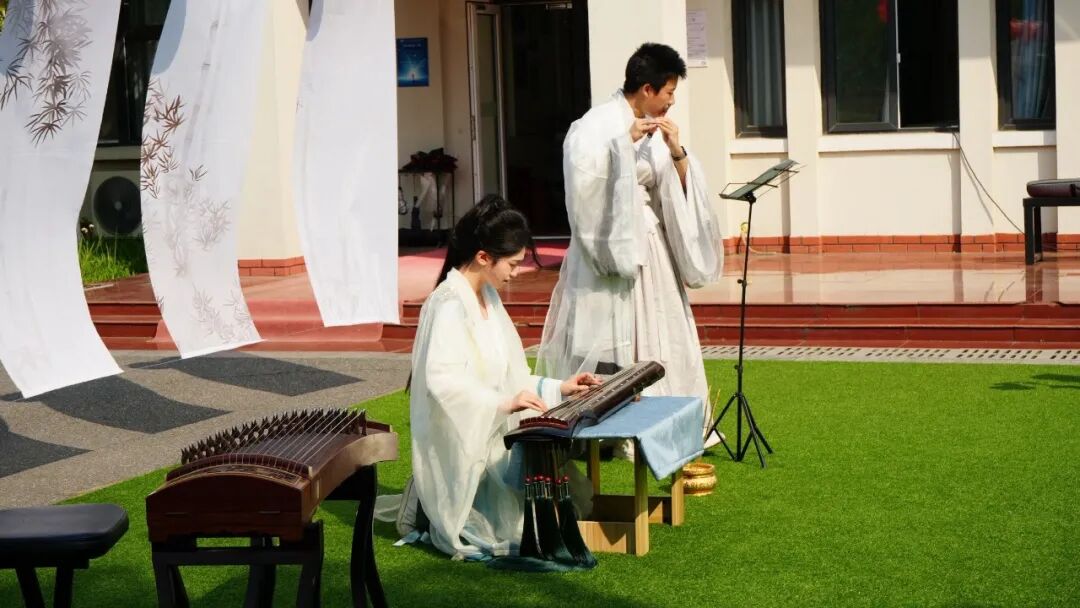 时而空灵悠远,时而清脆悦耳的乐声在校园中回荡。古琴的沉静与竖笛的明快交织,演绎着穿越千年的旋律,让听者心境平和,感受到东方音乐独特的审美意境。