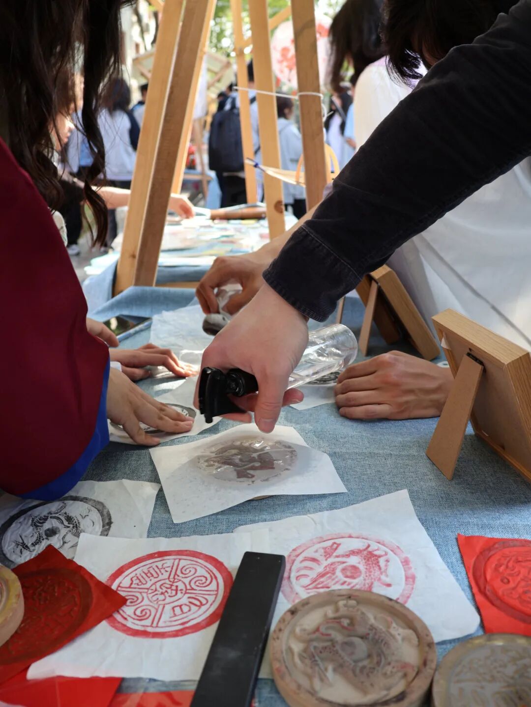 Using traditional techniques, students placed rice paper over engraved templates and gently tapped with ink pads, creating rustic prints that echoed ancient printing methods.