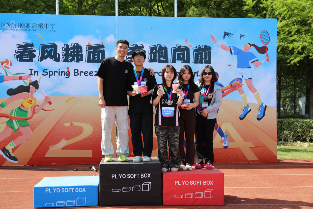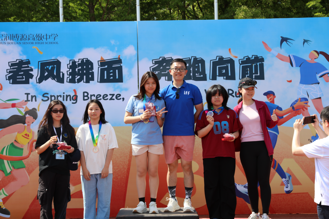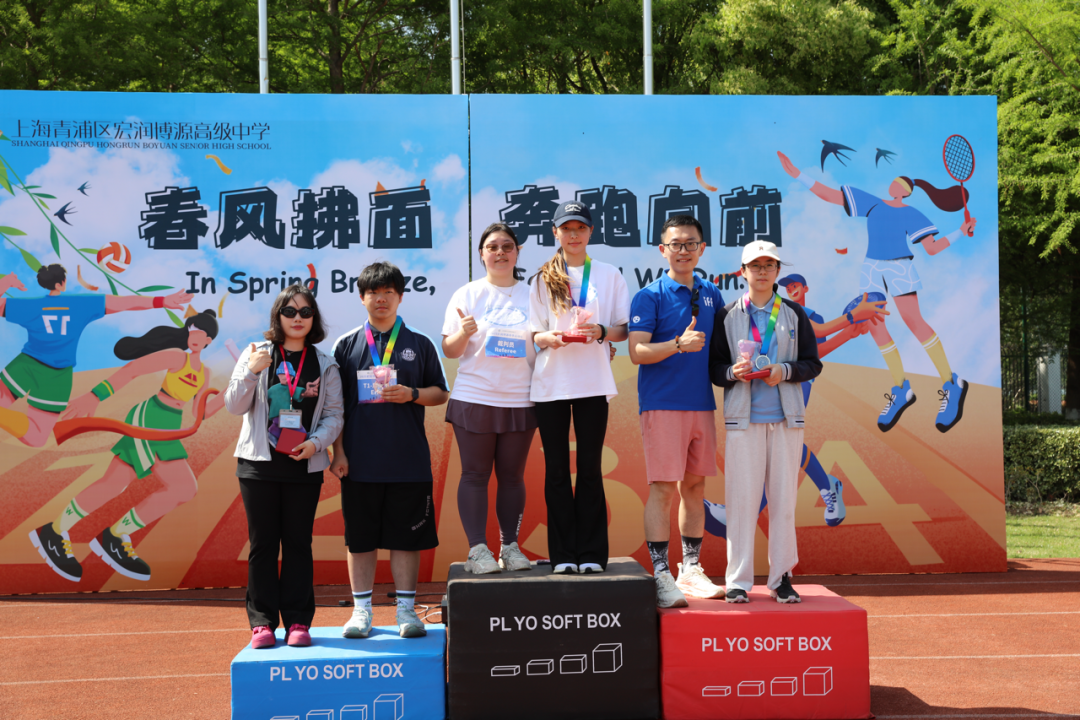 At 1:50 p.m., with the end of various competitions, the closing ceremony was held as scheduled. Chief referee Ms. Long Chengfeng announced the exciting results of the competition. School leaders awarded medals, certificates and trophies to individuals and groups with outstanding results, and also presented honors to classes that won the Sports Morality and Style Award and the Class Card Design Award. With Principal Liu Liu's concluding remarks and the announcement of a successful conclusion, the 2025 Spring Sports Meet of Shanghai Hongrun Boyuan School slowly came to an end.