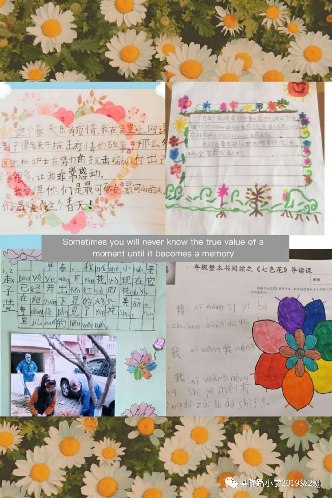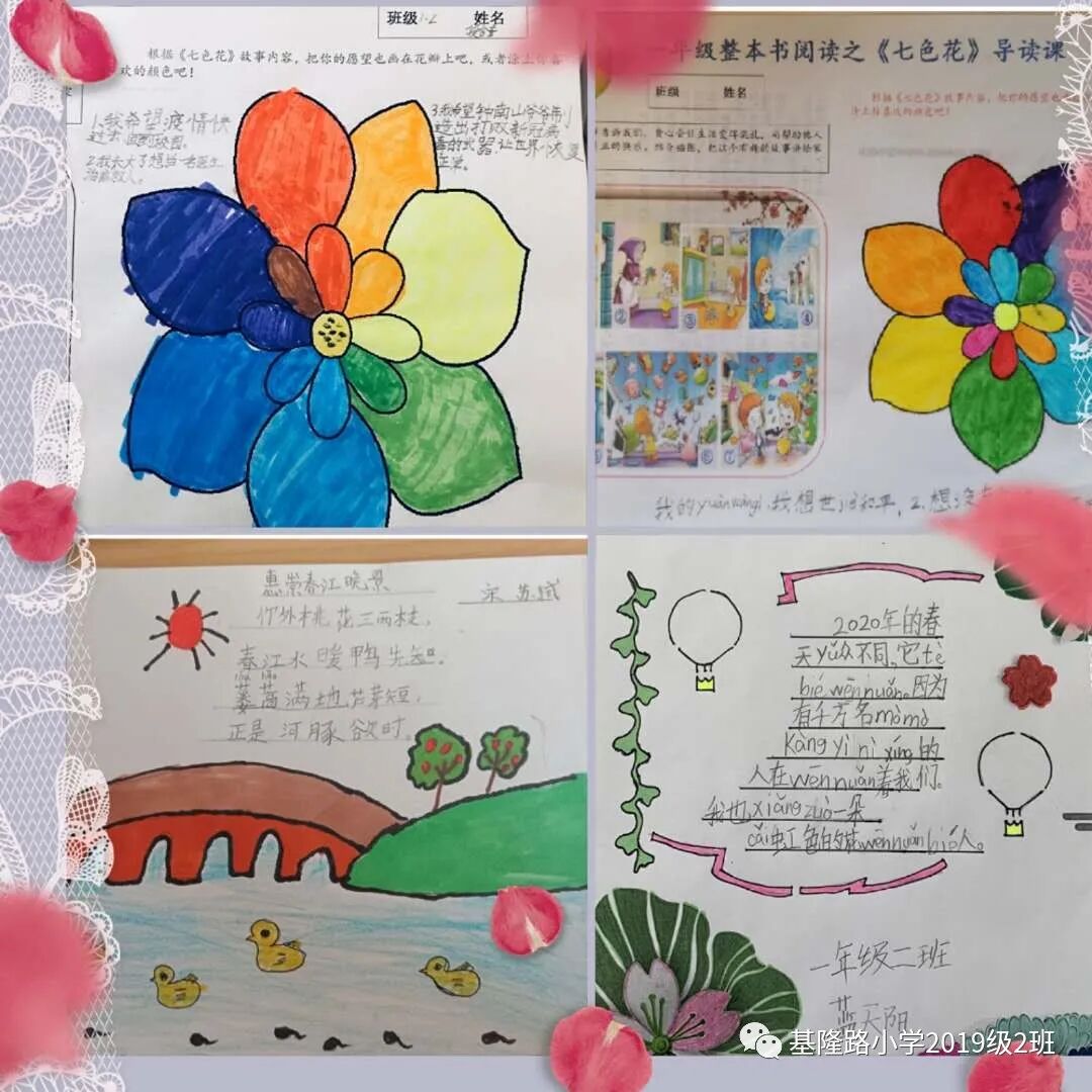居家云端教,绘本助力学,抗疫期间,师生携手一路相伴,相信风雨之后必有彩虹,共同“向着明亮那方”前进。绘本我爱我家--《朱家故事》、创编童谣--《可爱动物操》、绘出美好愿望--《七彩下雨天》、做最好的自己--《故障鸟》、温暖的春天--《花园里有什么》、寻找春天--《巨人的花园》、温暖感人--《七色花》《彩虹色的花》,细数我们班级一起读过的每一本书,已融入进我们的血脉。孩子在温暖、欢快的阅读中得到引导和启迪,感受到了故事内容的丰富性和趣味性,在潜移默化中获得滋润。