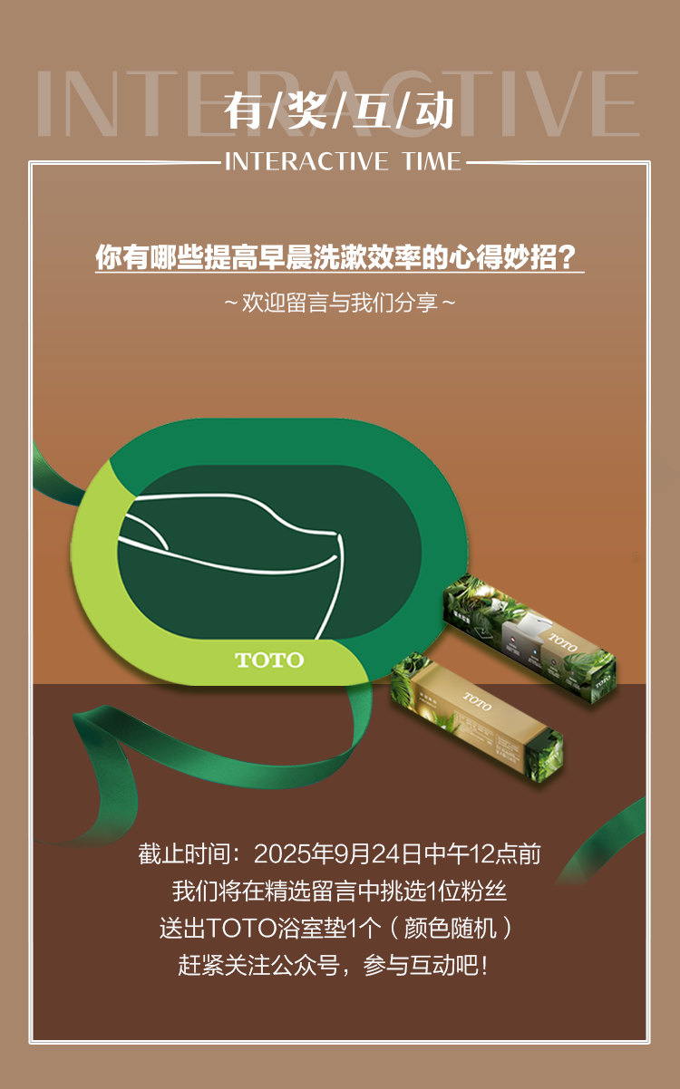 本文内容来源于公众号: TOTO东陶中国 ,请扫码查看原文。