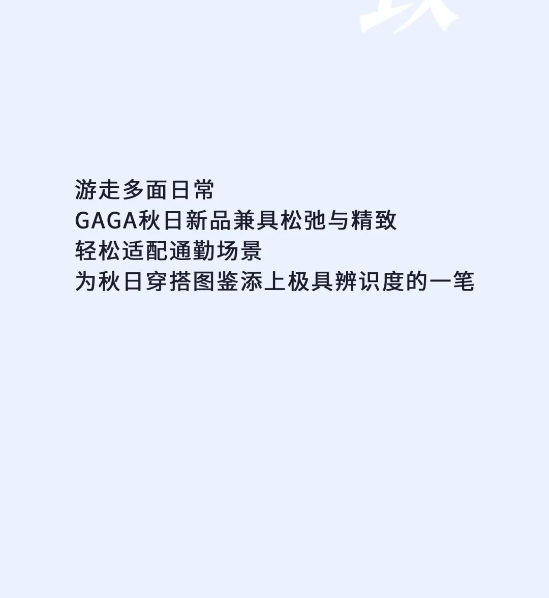 摘要:GAGA秋日新品兼具松弛与精致轻松,适配通勤场景,为秋日穿搭图鉴添上极具辨识度的一笔