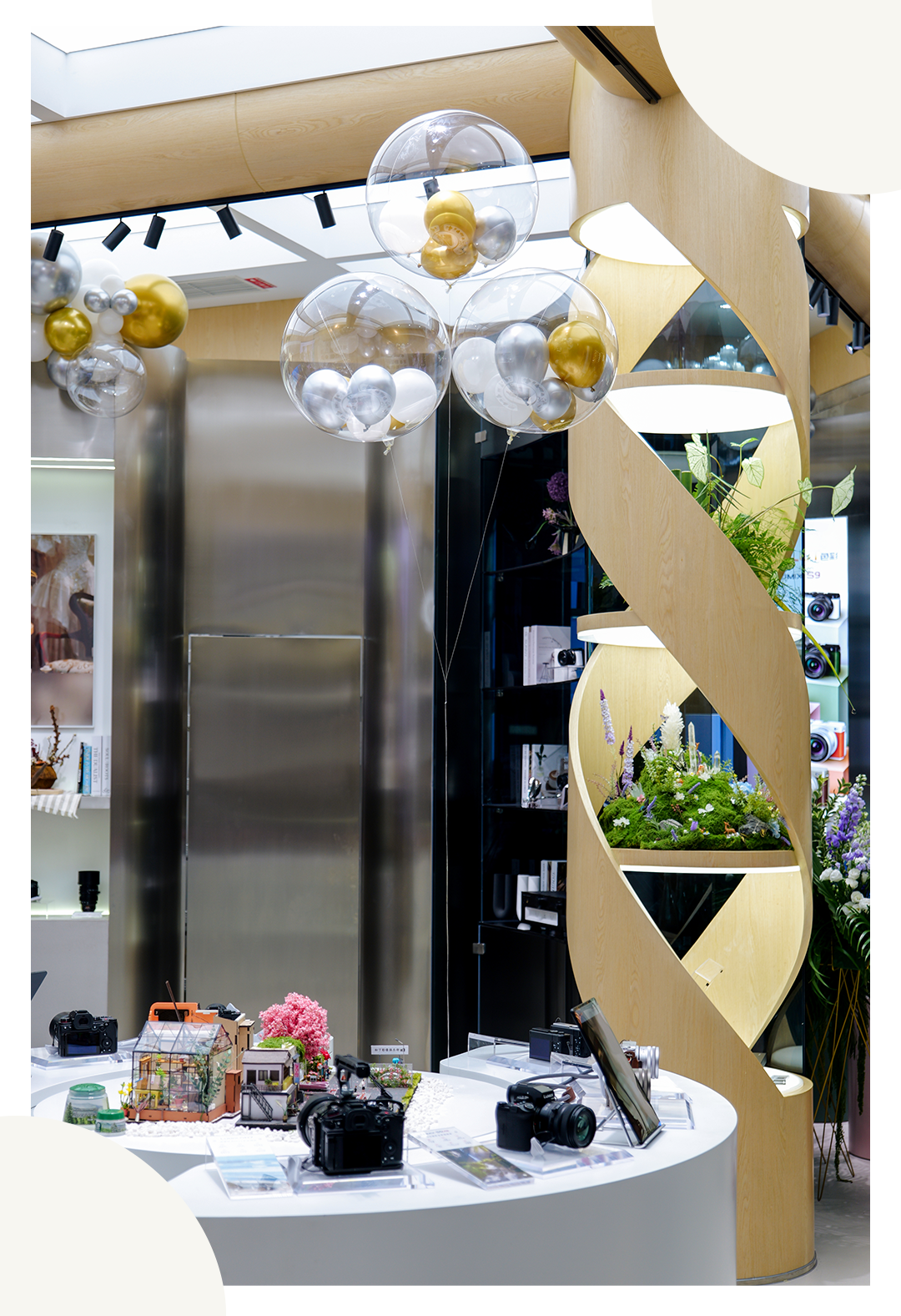 从门口的成都地标大片到室内简约松弛的生活美学空间,室内角落摆放的唱片机,松下成都影音体验店,不止是一个体验产品的空间,更像是一个邀请你慢下来,感受摄影乐趣、享受音乐世界、社交的年轻人的“会客厅”,让你安逸感受影像与音乐如何艺术润物细无声地融入烟火生活。