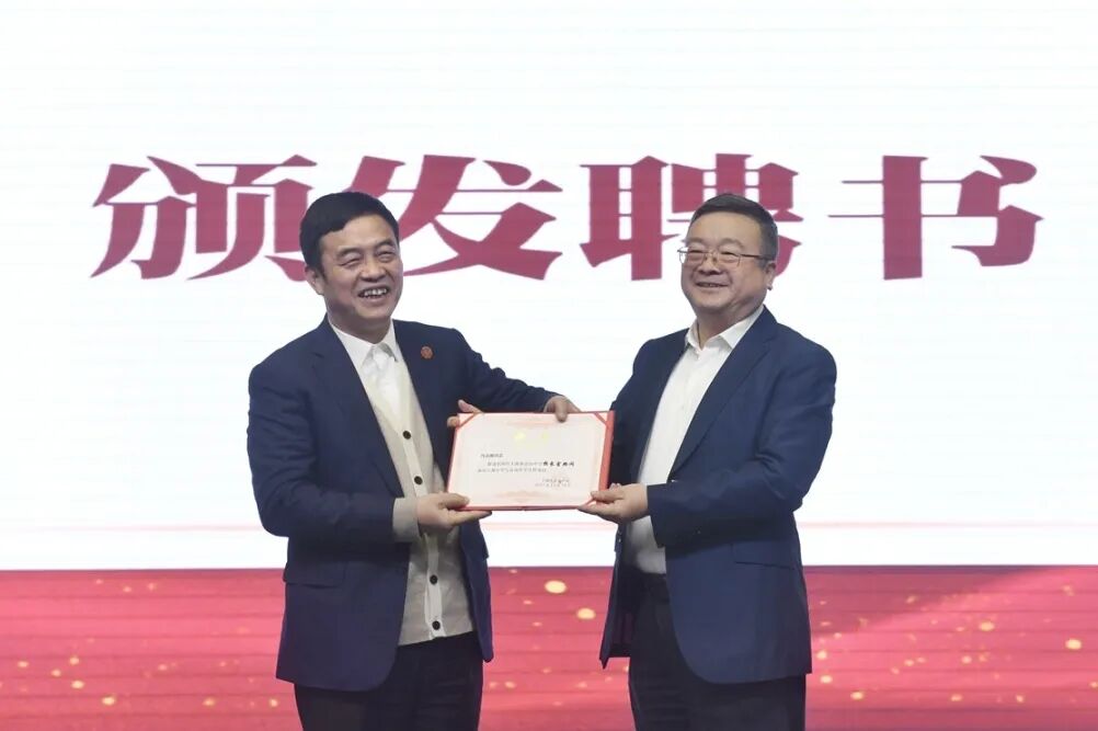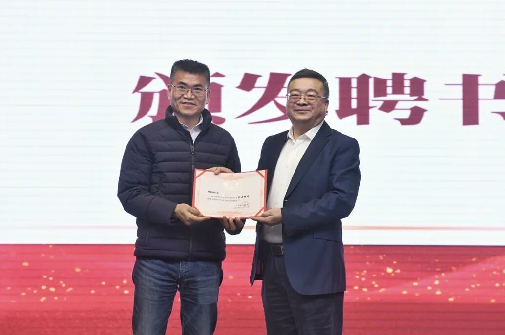 顾宏伟为冯志刚颁发金山中学校长室顾问聘书,为刘茂祥颁发金山中学党建顾问聘书。