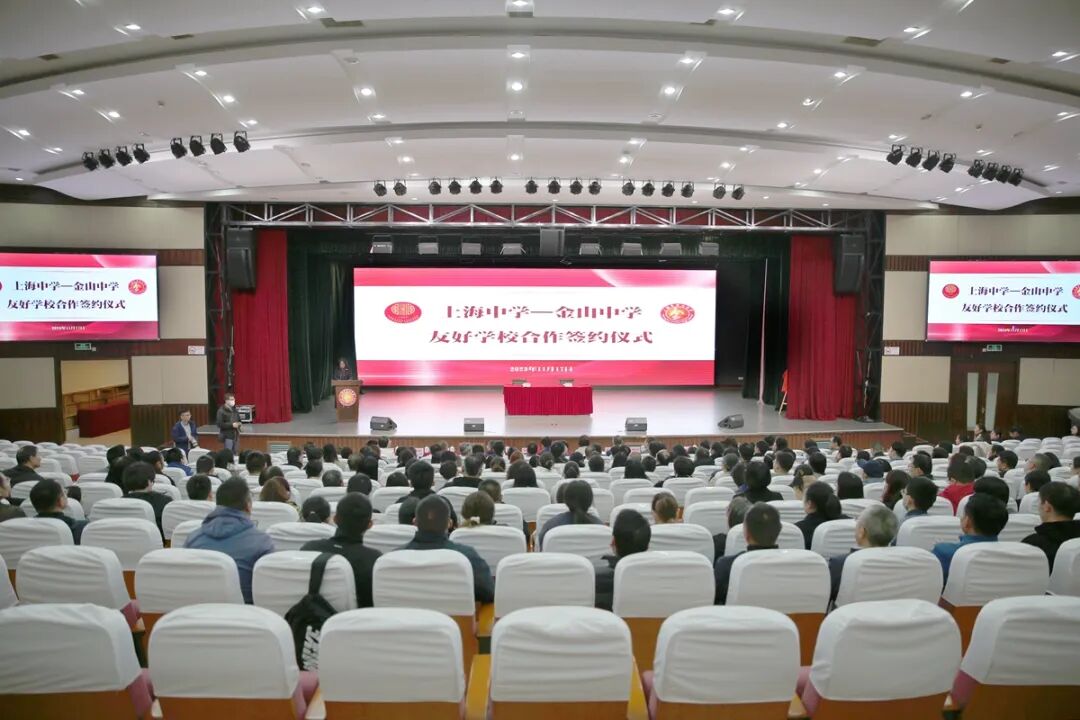 2023年11月17日下午,上海市上海中学与上海市金山中学结成友好学校签约仪式在金山中学梦想剧场举行。