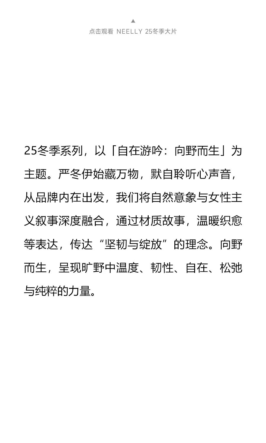 文章内容来源于公众号:NEELLY女装,点此可查看原文,内容版权归相关企业所有,本网站仅供交流学习。若涉及版权问题或存在侵权情况,请及时与我们联系,我们将第一时间进行删除处理。