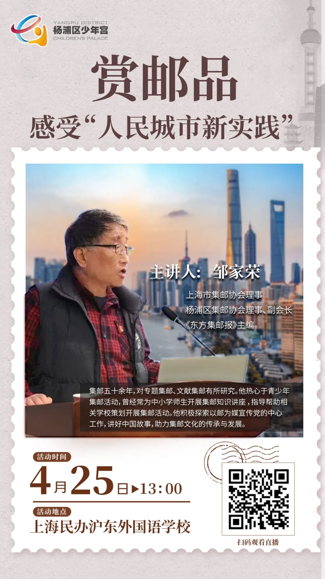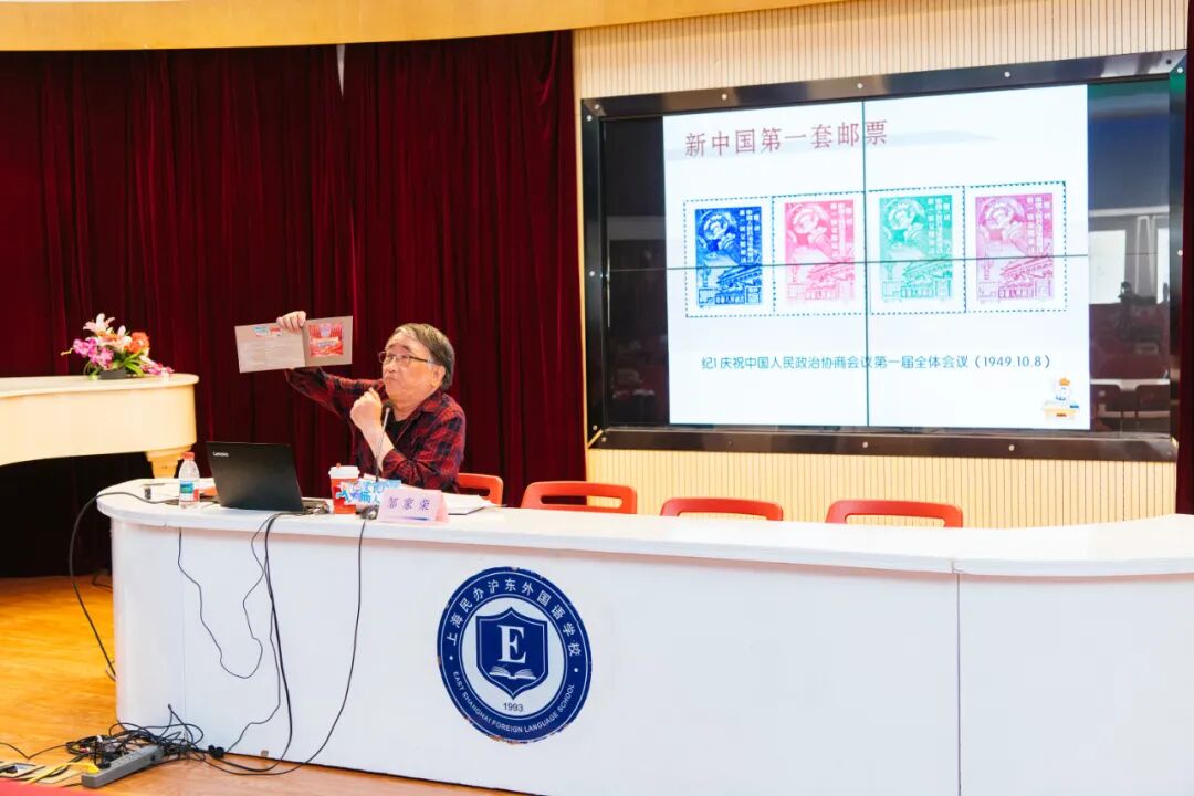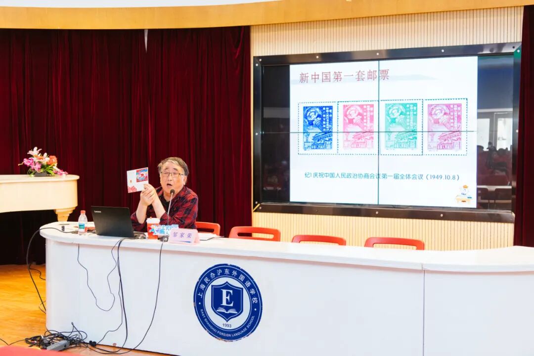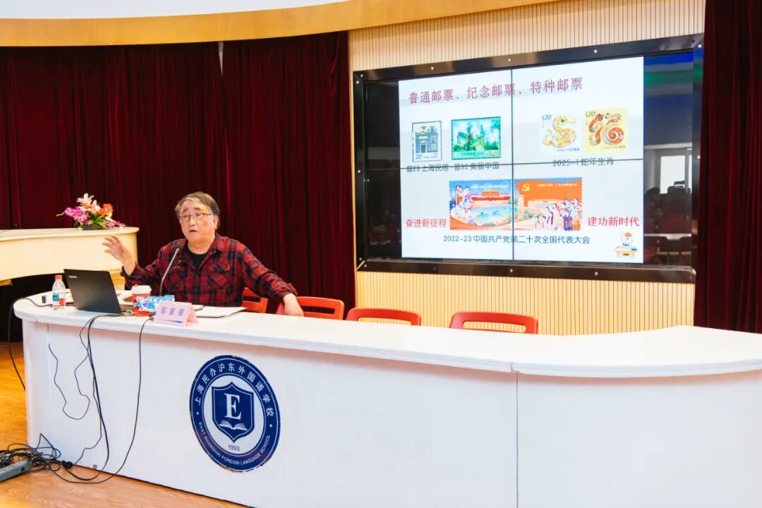 人人有为”为主题,邀请到上海市集邮协会理事、杨浦区集邮协会副会长邹家荣先生,为师生们带来了一场别开生面的《赏邮品 感受“人民城市新实践”》主题讲座。