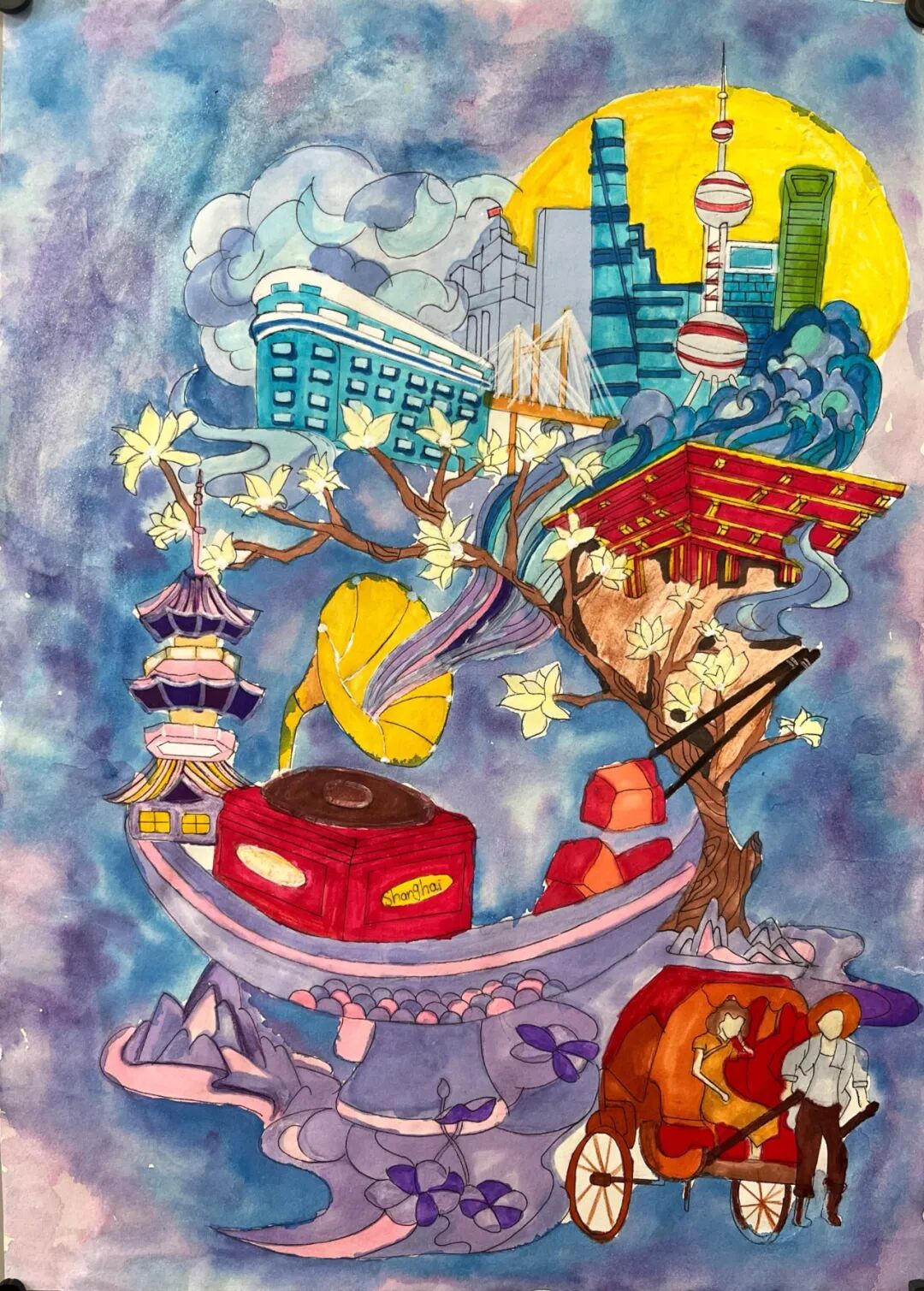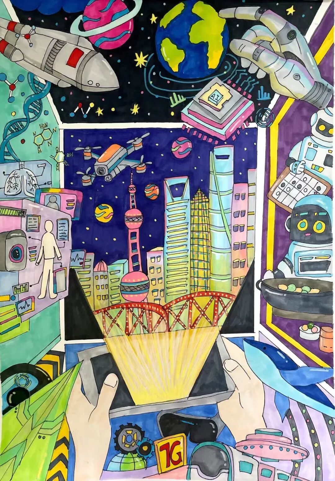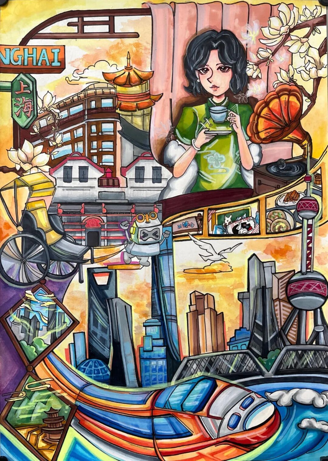 绘画项目更是精彩纷呈。同学们用色彩斑斓的画笔,勾勒出心中美好的上海,每一幅画作都像是一个独特的窗口,透过它们,我们仿佛看到了孩子们眼中那充满诗意和梦幻的上海。