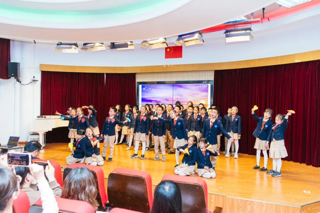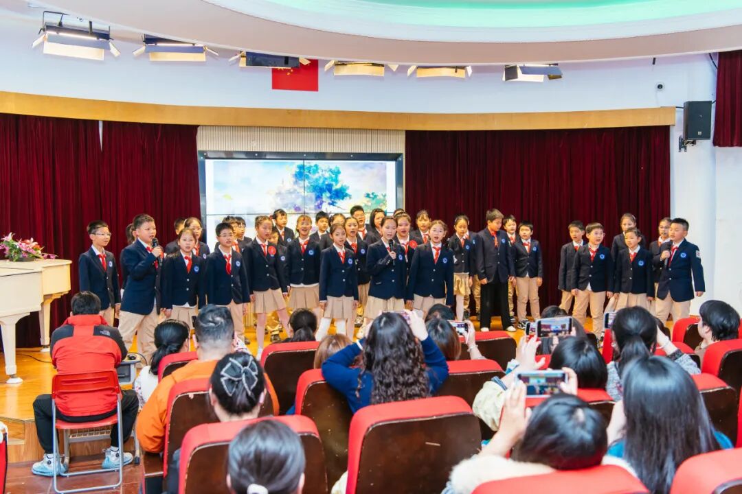 演讲的间隙,合唱表演为活动增添了别样的风采。四A班带来的《我的纸飞机》,歌声婉转,仿佛带着纸飞机穿越云端,驶向梦想的彼岸;四B班演唱的《四季的问候》,将四季的流转化作美妙音符,唱出了逐梦途中的多彩风景;四C班的《把未来点亮》,激昂的旋律如同一束光,照亮了孩子们前行的道路,点燃了全场对未来的热切期待。