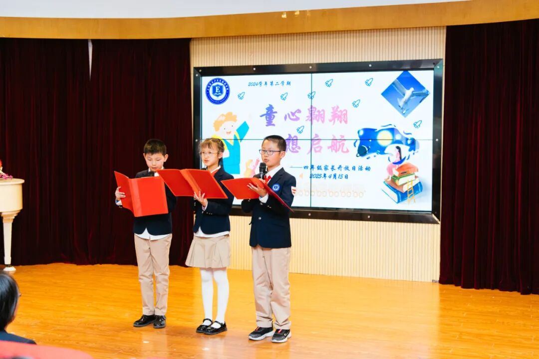 4月15日,上海民办沪东外国语学校四年级“童心翱翔 理想启航”演讲展示暨家长开放日活动在老师和家长的精心筹备下顺利举行。一场关于梦想与成长的故事,在这里徐徐拉开帷幕。