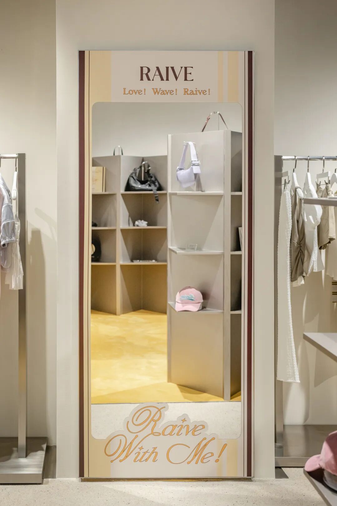 本季,品牌以“RAIVE WITH ME”为核心主题,开启音乐节叙事篇章。RAIVE新天地门店化身活力海岛,沙滩、音浪、帆影交织,瞬间漫入西西里海岸的椰林梦境,纵享自由假日时光。RAIVE以海岛假日氛围焕新衣橱,全新复古印花点燃仲夏热情,轻盈网纱层叠混搭,碰撞出独属盛夏的浪漫律动。