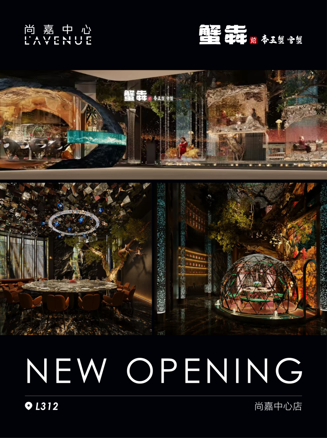 肆意盎然的夏日时光,上海尚嘉中心先后迎来蟹犇前·帝王蟹雪蟹和九厨·淮扬两大人气美食新店启幕。蟹犇前·帝王蟹雪蟹以鲜活帝王蟹和雪蟹为主打,致力于为食客打造高品质的海鲜料理体验。以「沉浸式海洋蟹宴空间」为设计灵感,打造吸睛又好吃的野奢帝王蟹宴请餐厅。九厨甄选淮扬各地的风味美馔,以大师匠心打造淮扬美食地图,为您呈现一幅包罗万象的淮扬长卷。