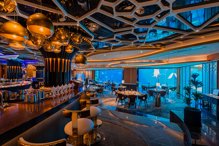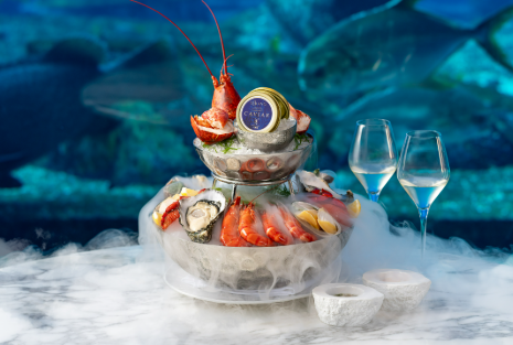 SSIANO, 作为蜚声全球的水下餐厅, 以海洋灵韵为魂, 呈现西式珍馐美馔的至臻境界。 在中国最具沉浸感的用餐胜地, 与鳐鱼、 鲨鱼及斑斓鱼群共舞, 开启一场浪漫与味觉的深海奇遇。我们以匠心致敬海洋恩赐, 主厨团队以非凡技艺雕琢每一道佳肴。 品鉴 OSSIANO 招牌亚特兰蒂斯海鲜塔的丰饶, 沉醉于帝王蟹意式饺子的醇厚, 或是让双色鸭肝欢愉曲在舌尖绽放——在这梦幻般的海底剧场, 每一刻皆成爱情诗篇。