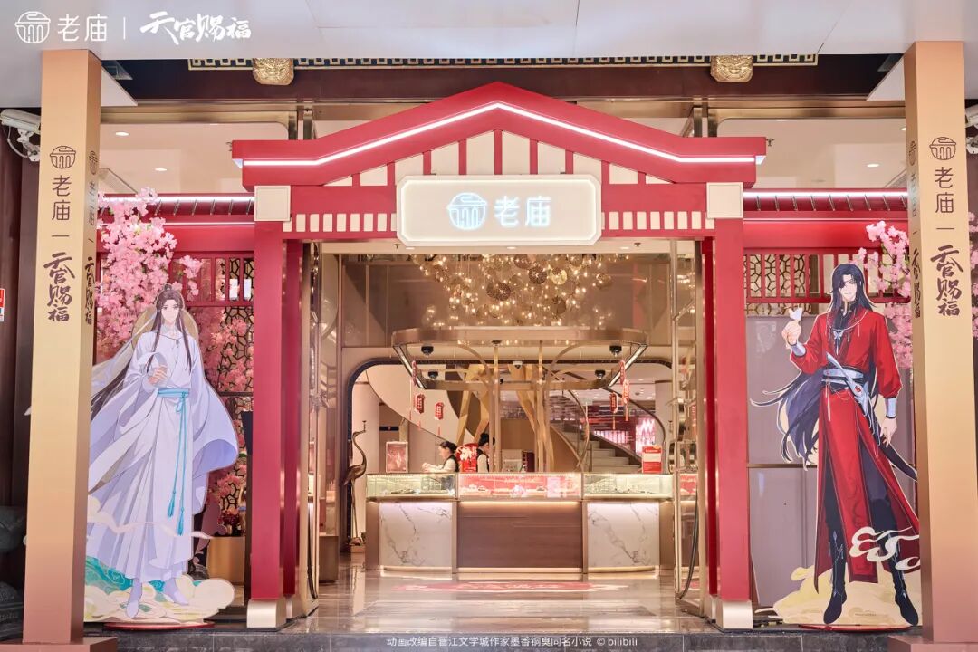 7月15日,老庙与热门动画IP《天官赐福》联名系列正式在全渠道发售。老庙在景容楼文化旗舰店特别设置了《天官赐福》动画主题美陈及场景体验区,通过创意游戏互动和限量周边玩法,以年轻人喜爱的二次元语言传递“天官赐福,好运成双”的美好寓意,吸引了众多古风爱好者及泛二次元年轻群体的目光。