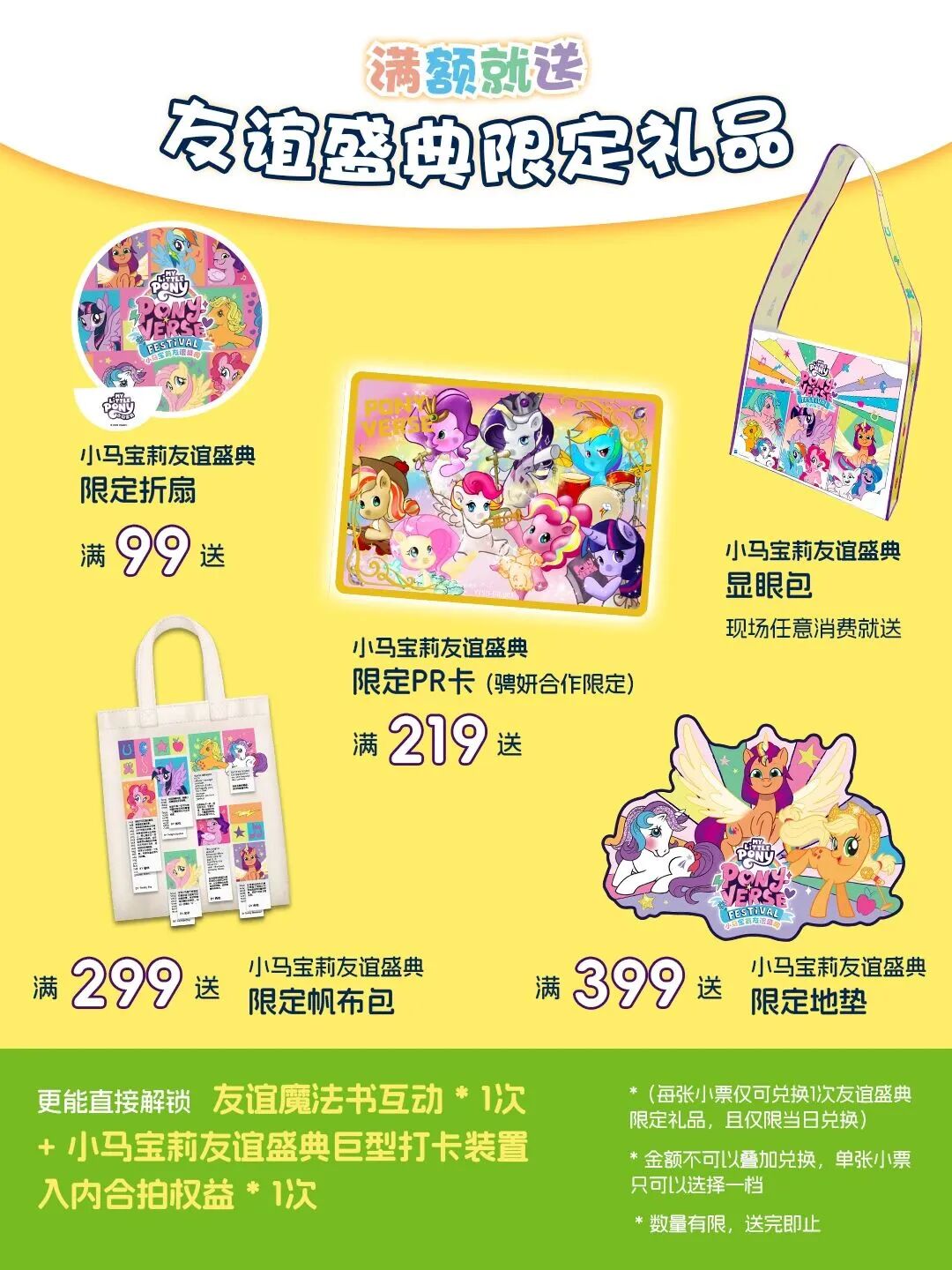 小马国的朋友们,狂欢即将开启,首届小马宝莉友谊盛典于7月19日正式启幕,赶紧与你的朋友一起见证友谊魔法的奇迹,带你沉浸式体验小马宇宙!盛典巨型打卡装置、小马宝莉限定&新品周边,来这里就GO了。现场更有小马宝莉Style潮牌票选、数字合拍、萌眼配对、友谊金句墙打卡等环节,快来与各代小马面对面开启一场充满友谊与快乐的魔法之旅吧。(入场前需进行预约)