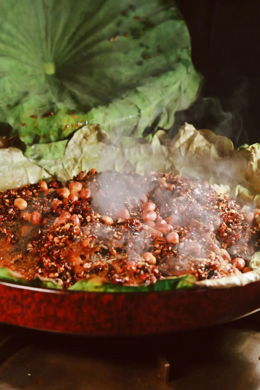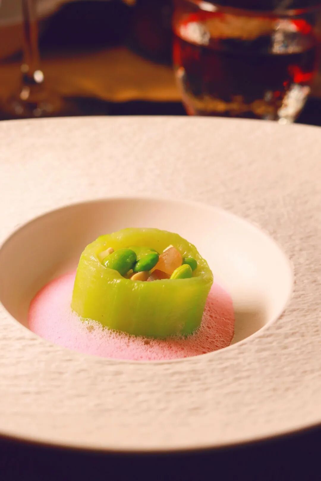 用挖空的罗甸丝瓜,纳入贵州本地小毛豆丶腊肉丶芹菜等配菜,考验厨师的手艺。在贵州三穗,立夏要吃豆腐笋,有“立夏不吃笋,瘦得光棍棍”的说法。其实,有其科学依据,因为湿热天气,容易导致胃口不好,而笋所富含的可溶性纤维,正好有助于消化。
