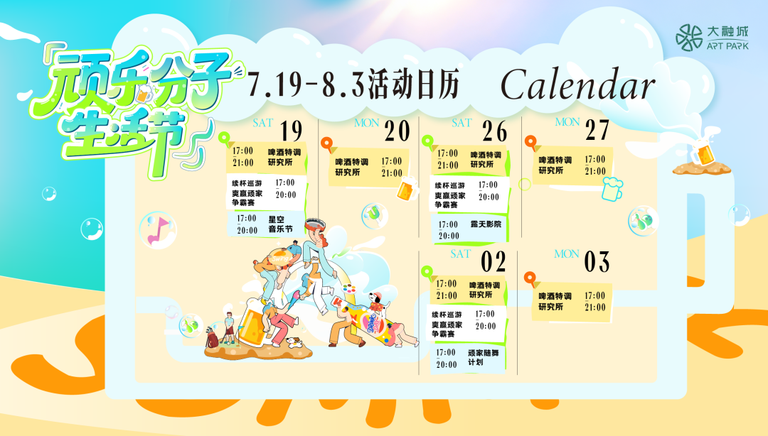7月至9月邀你共赴一场夏日浪漫。顽乐分子生活节,活动日历提前剧透啦!露天影院,微醺状态,顽乐一下,生活更绽放。长宁ArtPark大融城,加码延时至9月30日,你的幸运超长待机!消费满88元=1次抽奖机会,100%有奖,手气王直接带走!兰蔻礼盒/阿迪达斯自行车会是你的专属幸运吗?
