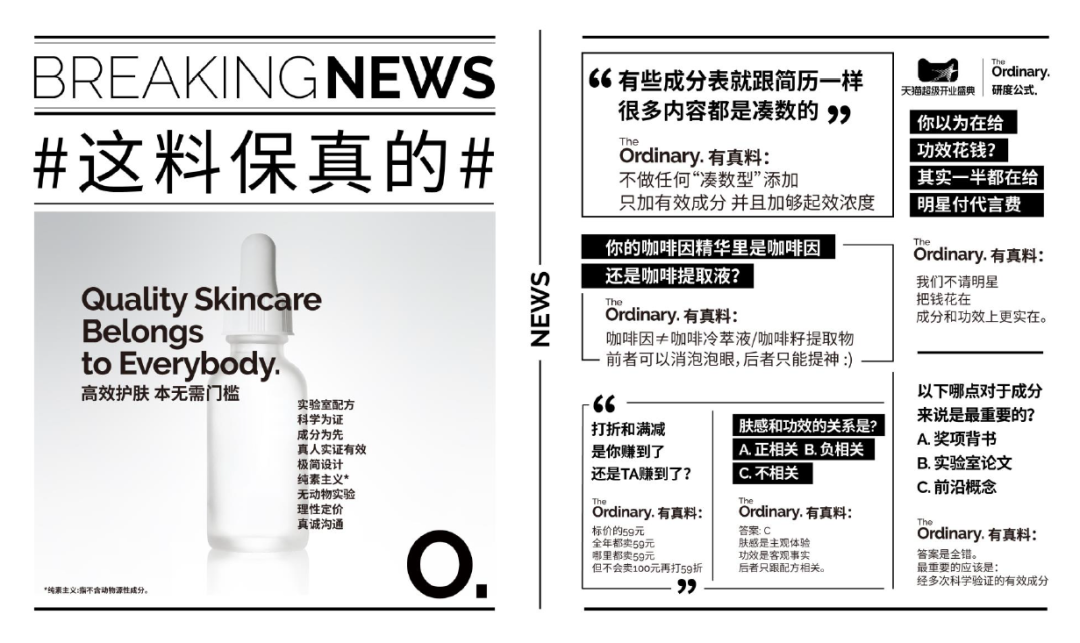 从传递品牌理念到构建本地化沟通,The Ordinary「研度公式」日前举办品牌发布会,集中呈现品牌理念与产品重点,并于7月11日正式登陆天猫平台。从实验室走到街头,品牌用真诚沟通,把好产品带到用户身边。The Ordinary“这料保真的”快闪已落地上海西岸,而且这些“真料”好产品,在天猫也能轻松买到了!