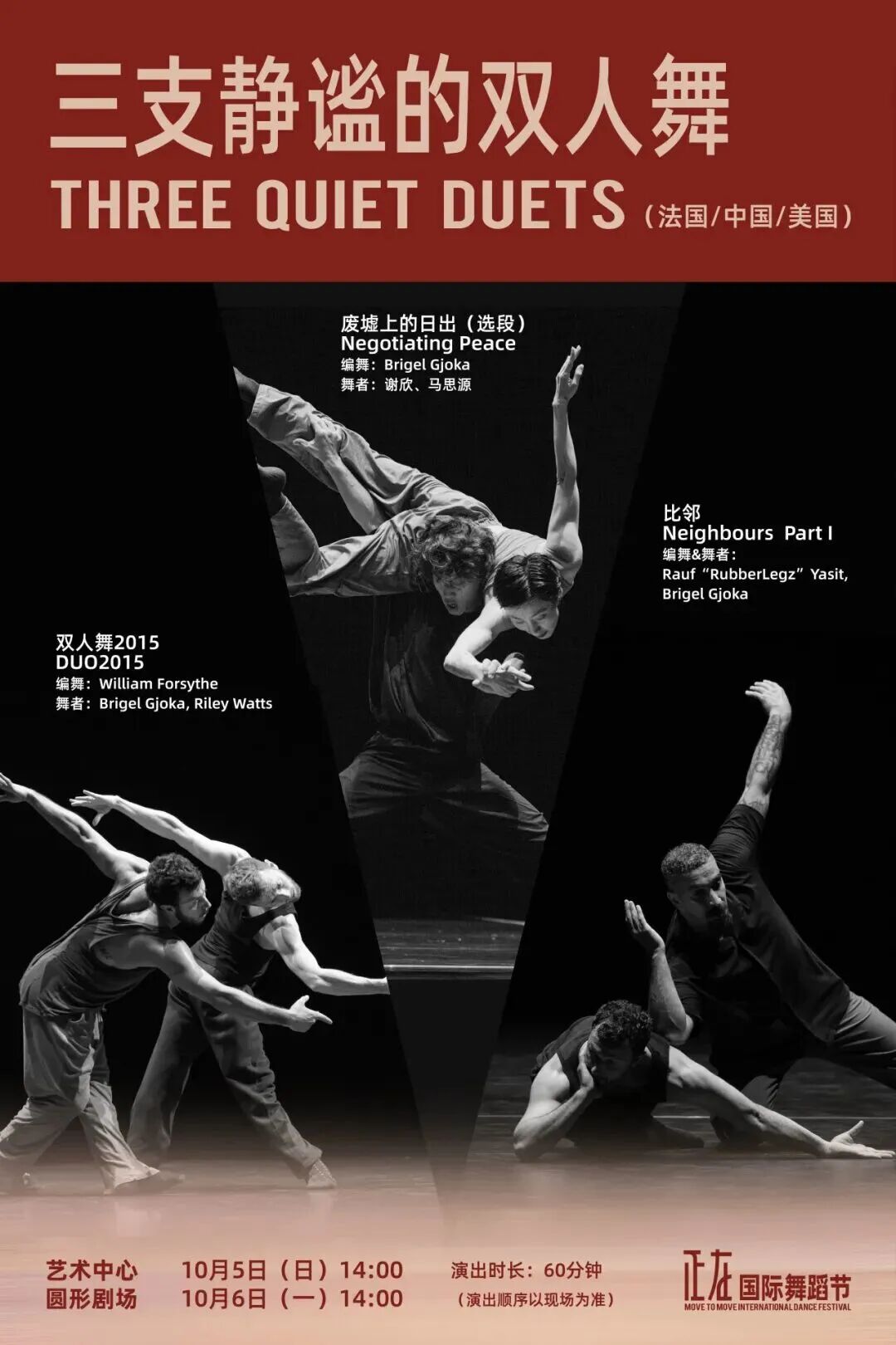 《三支静谧的双人舞》《动作世界》《勾勒》三部舞蹈作品,跨越顶级经典、打通身体思索、解锁环境感知,打卡心仪剧目,收获独到感受。