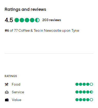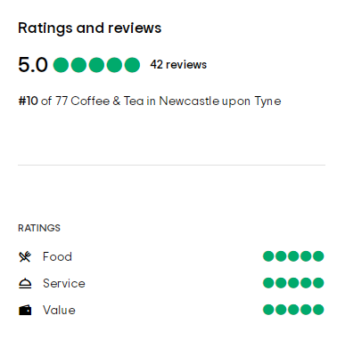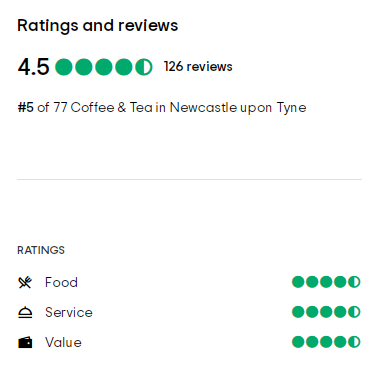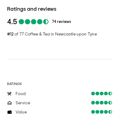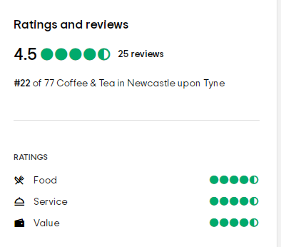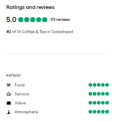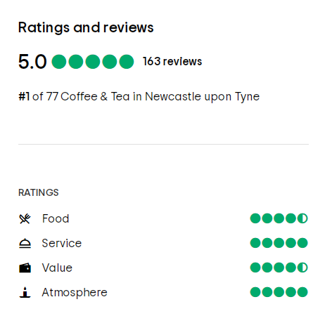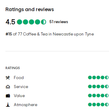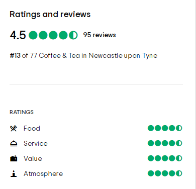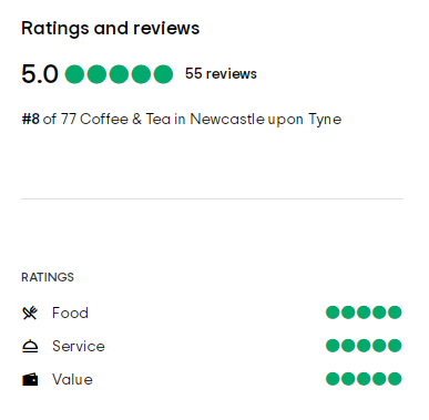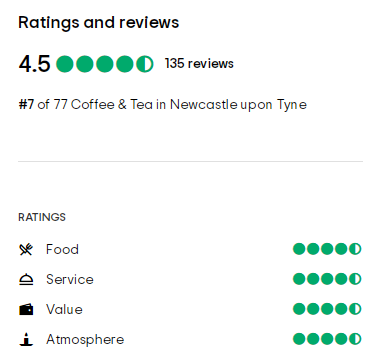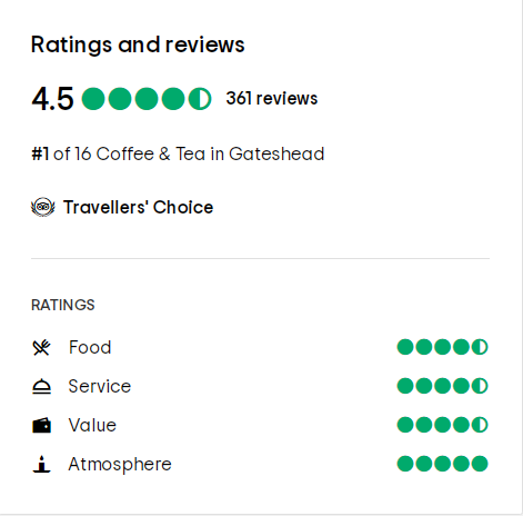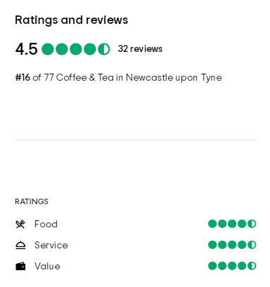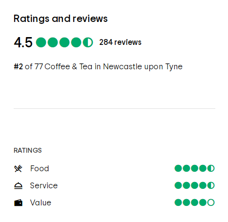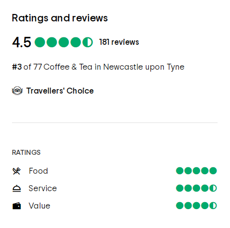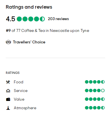 Tripadvisor评分在4.5和5(最高分为5分)咖啡馆,