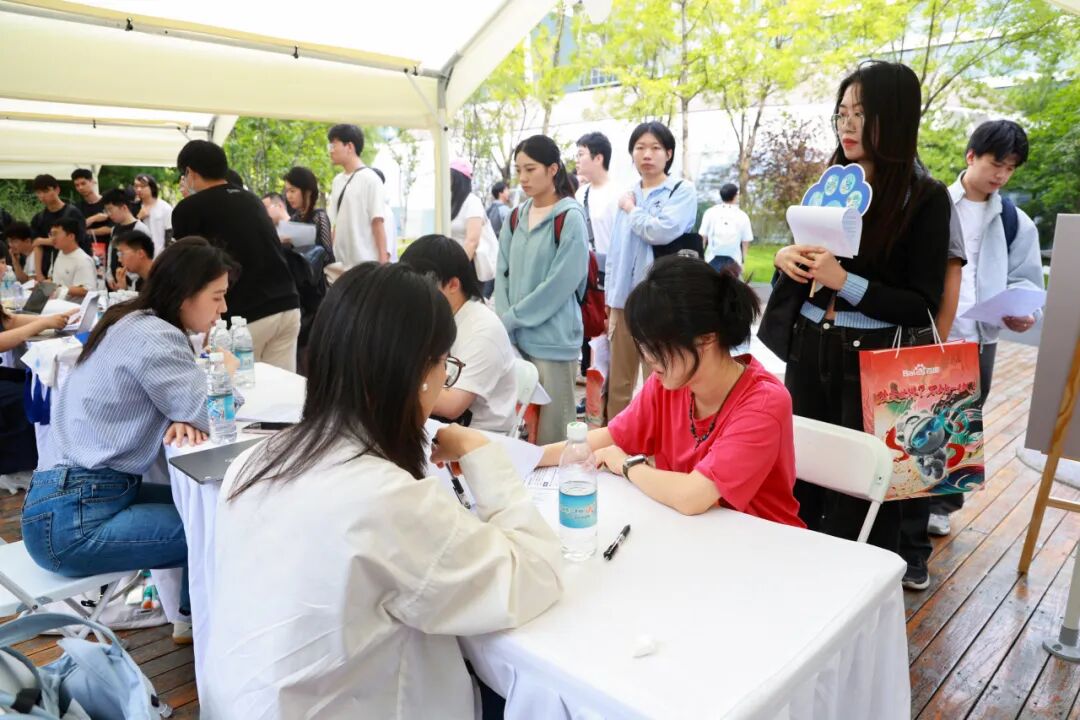 “简历优化工坊”更是人气爆棚。资深HR现场收简历,还为同学们提供一对一的简历优化指导,根据每位同学的专业背景及职业规划输出个性化的就业指导建议。更有多位经历亮眼的同学当场收获 "面试直通卡",真正实现了从了解到互动、从投递到直通面试的丝滑衔接。当然,在得到专业指导以外,还能收获沉甸甸的礼品,幸运er大奖拿到手软啦!