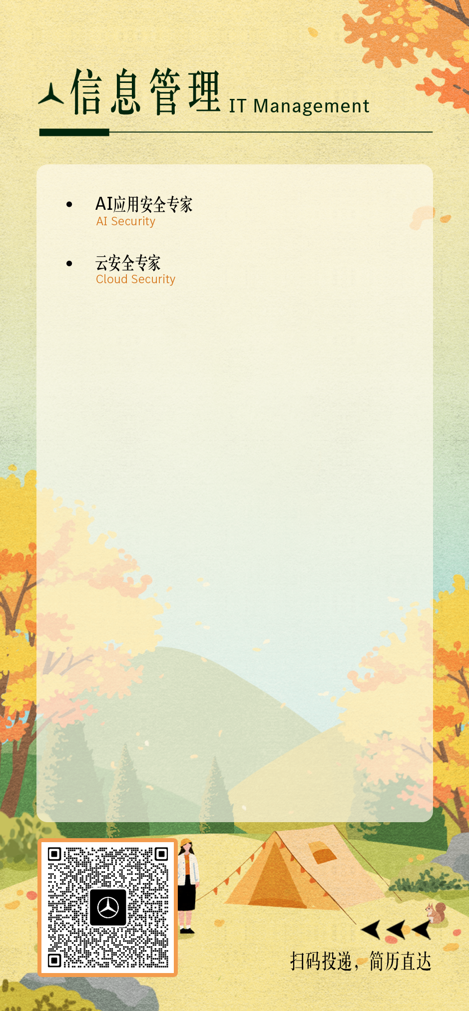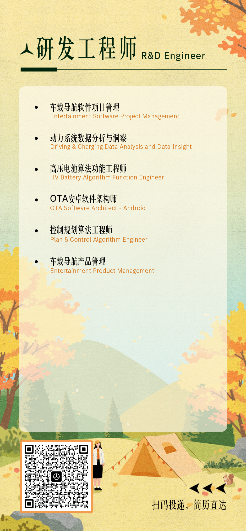 文章内容来源于公众号:梅赛德斯-奔驰招聘,点此可查看原文,内容版权归相关企业所有,本网站仅供交流学习。若涉及版权问题或存在侵权情况,请及时与我们联系,我们将第一时间进行删除处理。