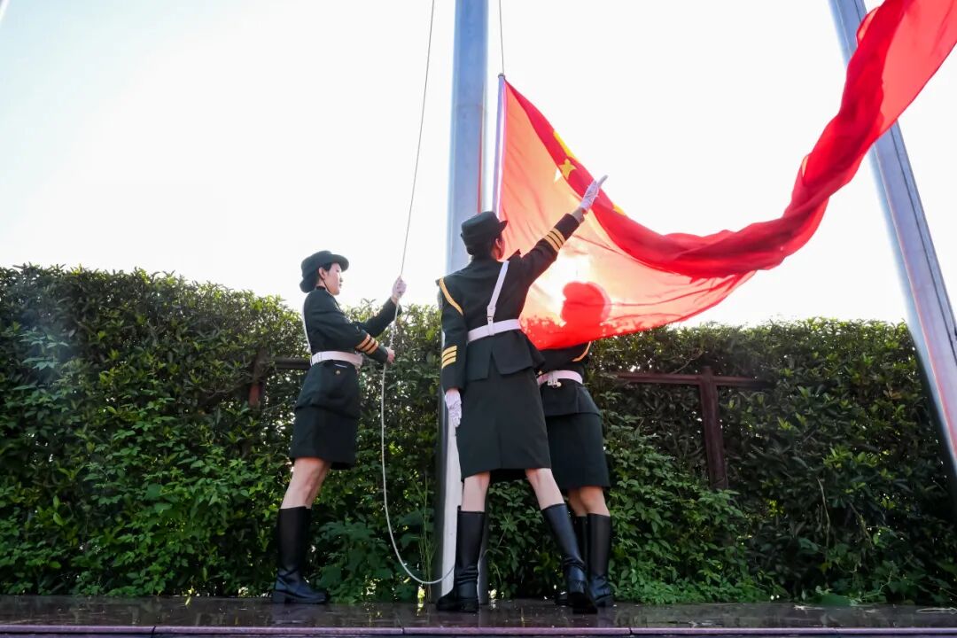 手举五星红旗