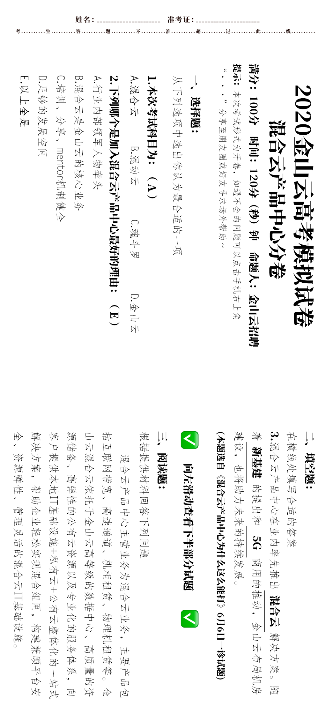 这里有套试卷