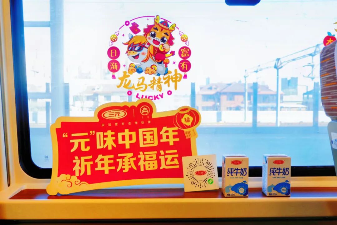 “元”味中国年,祈年承福运,2024年1月22日,从北京出发的G123列车承载着三元满满惊喜的列车公益活动暖心启程,让乘客们感受到了浓浓的年味和三元的热情。三元食品精心准备了极致1+1原生双蛋白纯牛奶和三元经典方白纯牛奶,作为暖心礼物送给每一位高铁乘客。这份惊喜让乘坐这班高铁的人们感到幸运与温暖,也让他们对三元品牌有了更深入的认识。