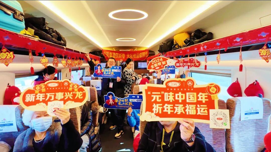 把三元的温暖带回家,车厢内弥漫着幸福的节日氛围,旅途的劳累也随之消散。驰骋在神州大地上的高铁,正在以“加速度”和三元一起,助力亿万高铁乘客奔赴极致的团圆时刻。