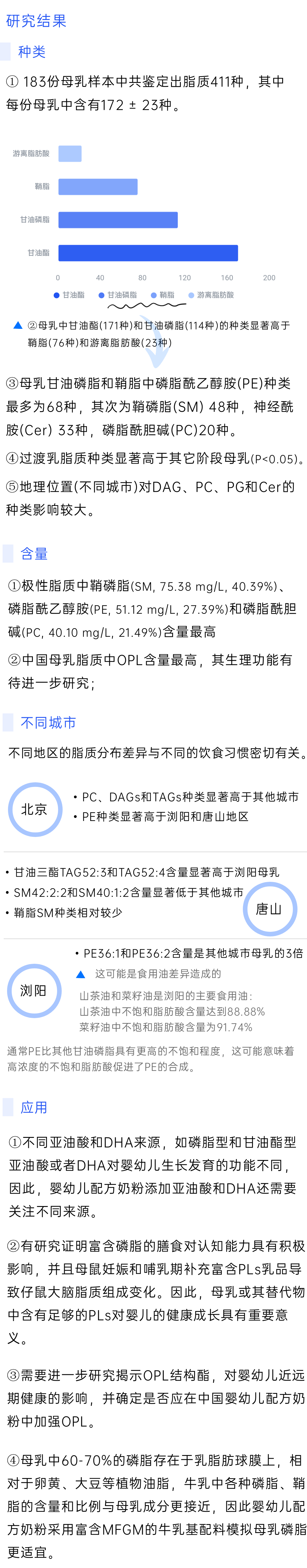 [3]参考文献:[1] Zhao, Junying., Liu, Qian., et al. Quantitative profiling of glycerides, glycerophosphatides and sphingolipids in Chinese human milk with ultra-performance liquid chromatography quadrupole-time-of-flight mass spectrometry[J]. Food Chemistry (2020), doi:10.1016/j.foodchem.2020.128857
