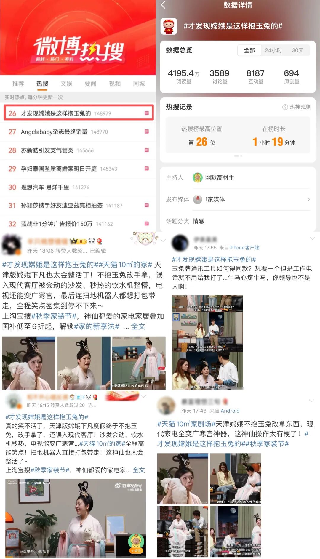 《嫦娥的年假》上线后喜提热搜,让品类营销不再是“自说自话”,而是一场用户愿意参与、传播的狂欢。
