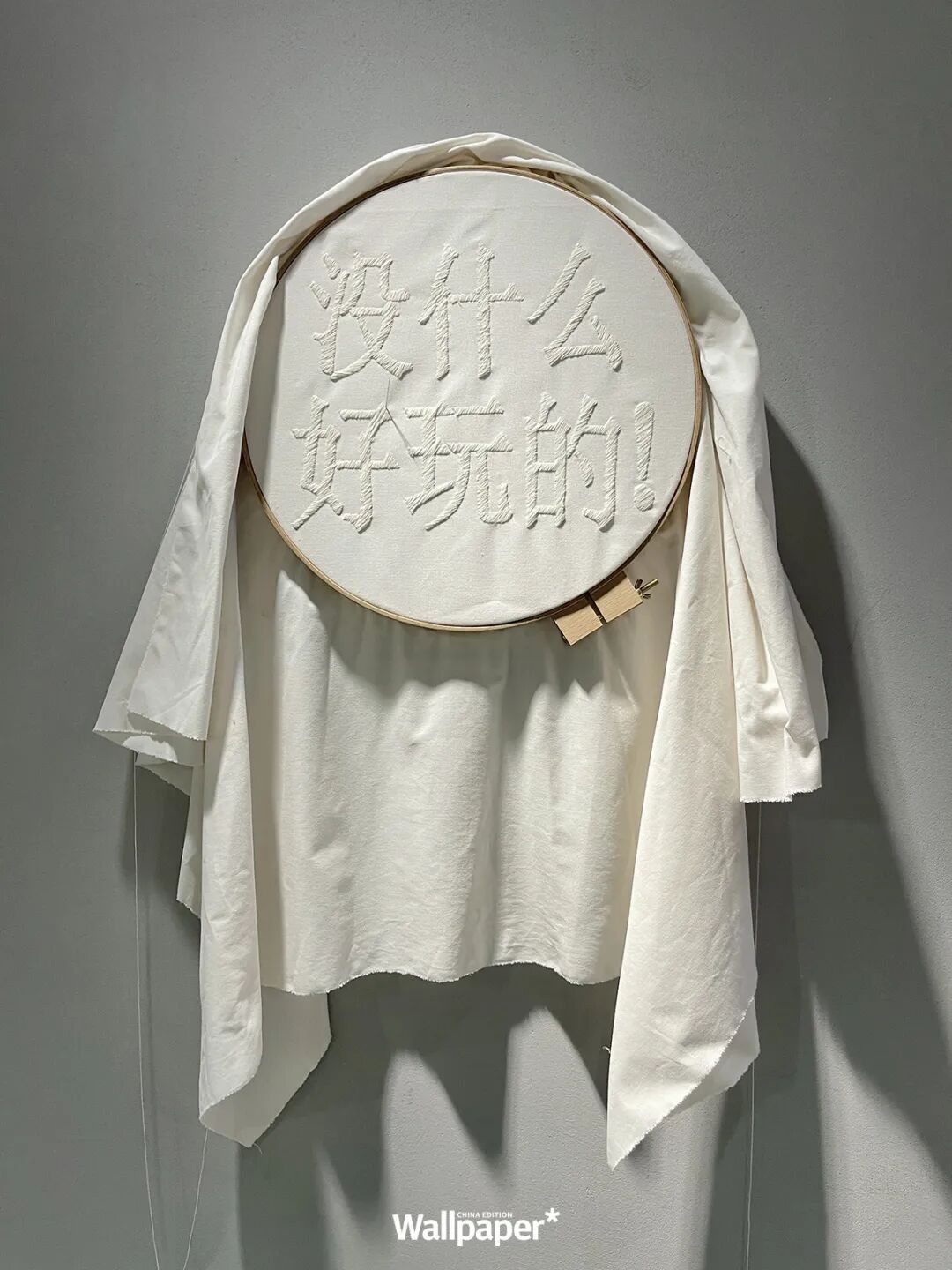 “没什么好玩的”这句话是一个时间坐标。它最初出现在1997年,是林天苗一件同名作品的题眼。一个直径近2.5米的巨大球体,由白棉线一圈圈“很无聊地”缠绕而成,最后一根线头连接着一块绣着这六个字的绣绷;无差别的白色棉线将无差别的劳动捻进作品,如果自球心抽丝剥茧,时间会倒退回千禧年前后。那时,林天苗的生活发生了很大变化。她刚从纽约回国不久,孩子尚幼,生活与创作都充满了不确定性。可以说,这件作品对应着她对自身创作没有特定目标,或者对艺术本身也并不笃定、甚至缺乏自信往前迈进的状态。