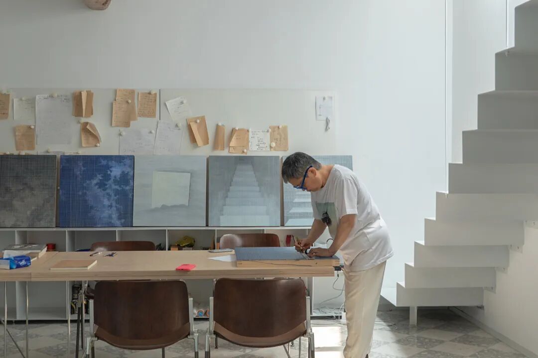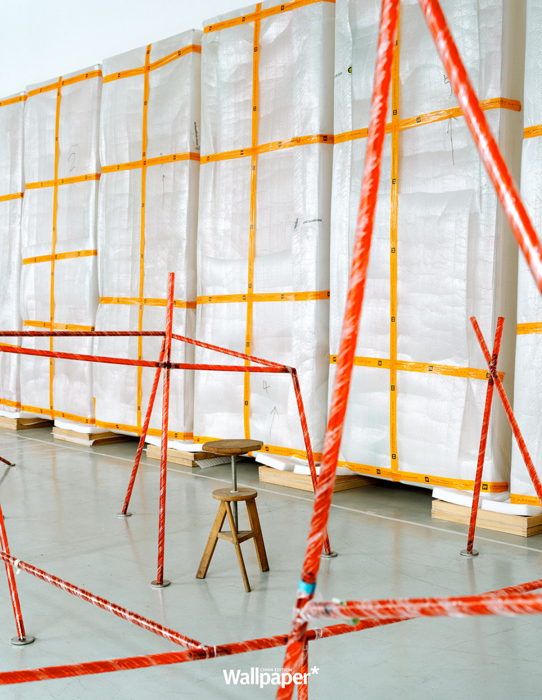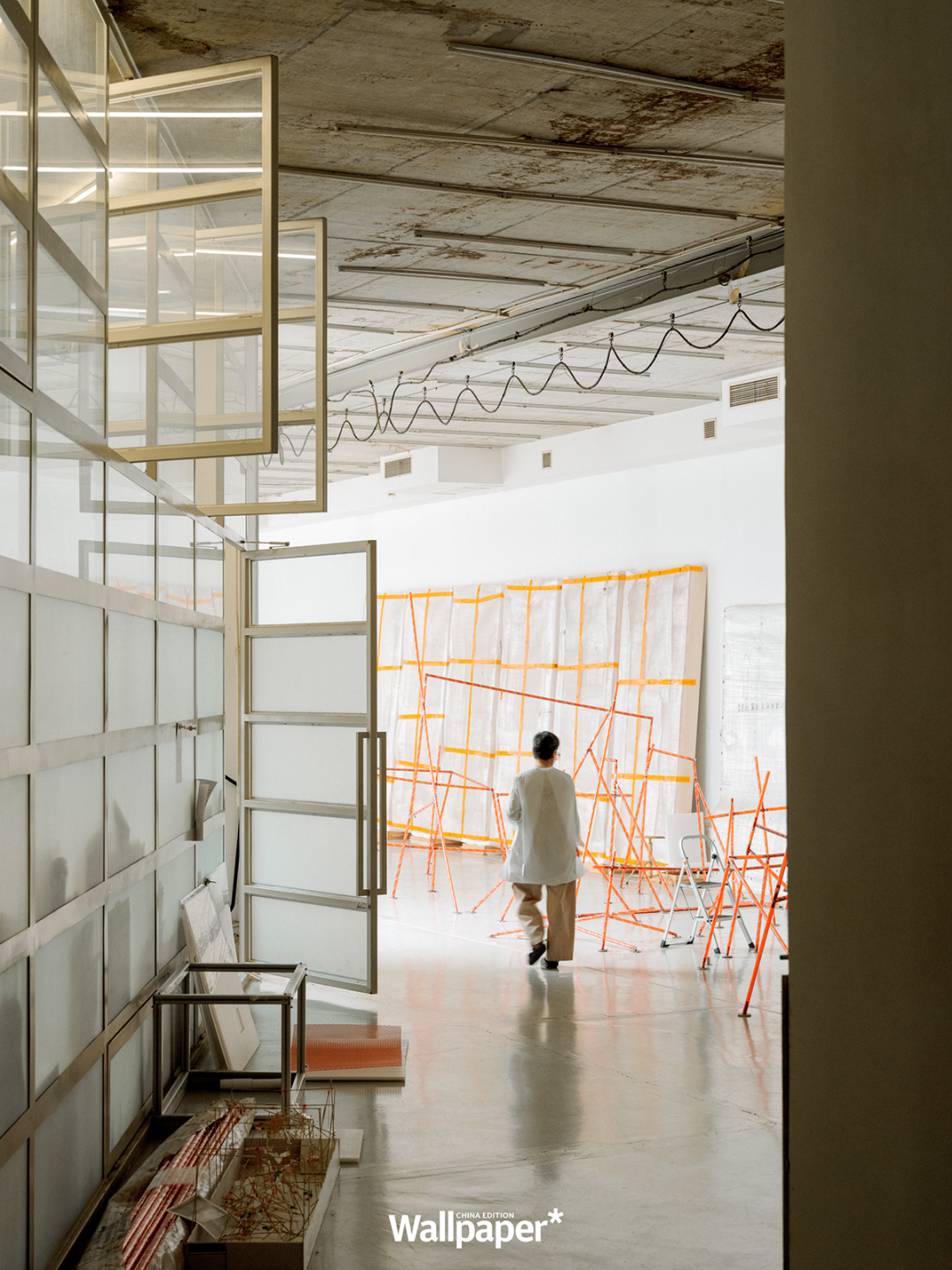 大展开幕临近的日子里,林天苗工作室的时间表是按照半小时的刻度来排的,她手中拿着一大串钥匙和一圈色卡,在工作室各处走动,不时与同样忙碌着的工作人员讨论种种细琐而紧急的事项。工作室会客区的氛围依然颇为闲适:院内养育品类繁多的绿植,正好围裹室外的茶歇处;阳光房中是一个巨大的鸟笼,几只小雀在内飞动嬉戏。而从一层会客区步入地下,就瞬间切换入一个庞大项目的指挥中心。
