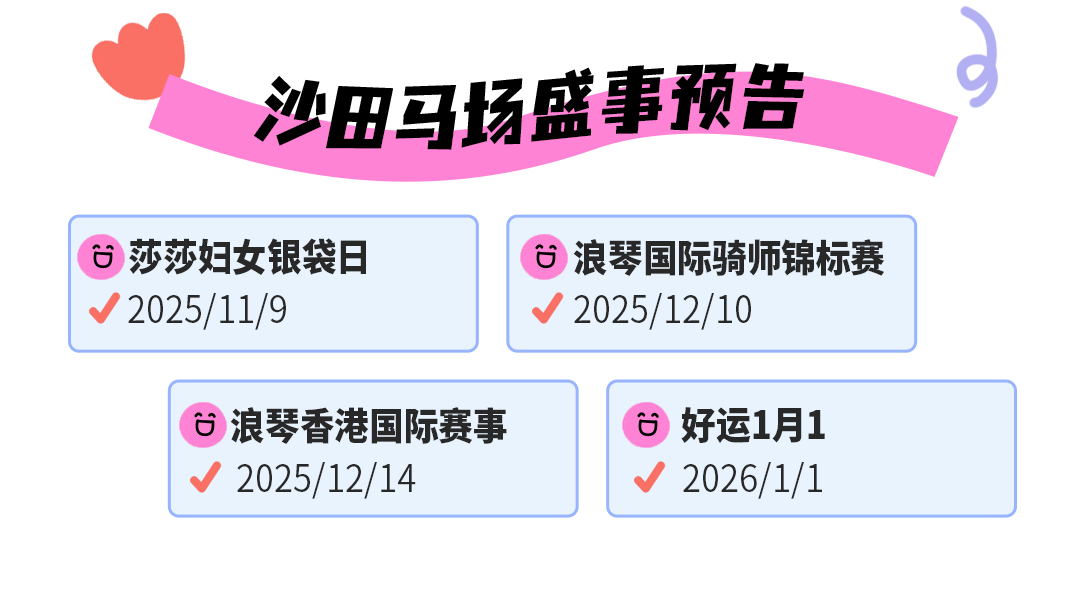 下半年沙田马场还将迎来多个盛事,想体验的小伙伴记得码住时间,提早规划行程。