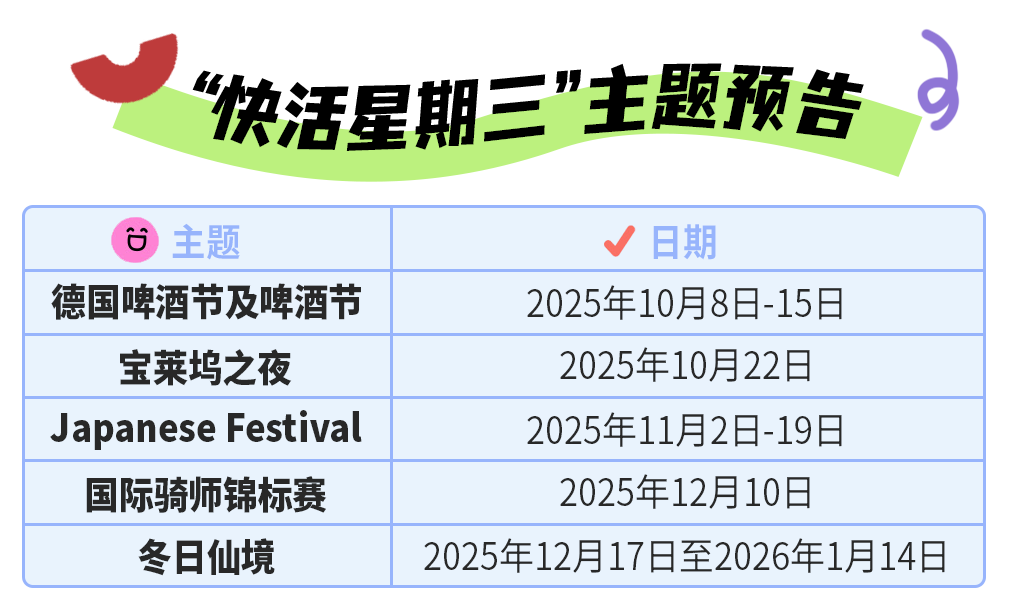 10月8日「德国啤酒节」与10月15日「啤酒节」接连登场,带你沉浸于纯正巴伐利亚风情。一起畅饮冰爽啤酒、聆听动感民谣、感受热情舞蹈,尽享秋日狂欢!