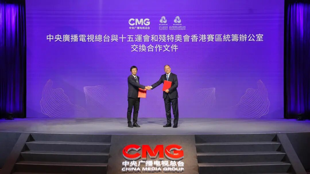中央广播电视总台与十五运会和残特奥会香港赛区统筹办公室交换合作文件