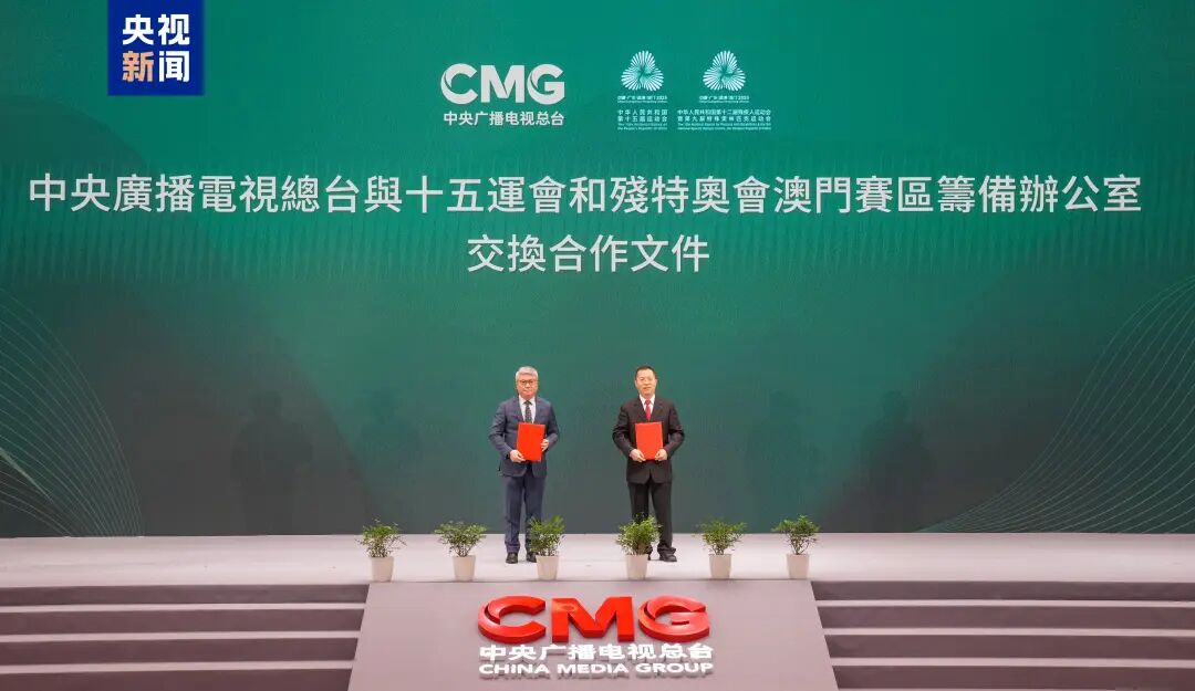 中央广播电视总台与十五运会和残特奥会澳门赛区筹备办公室交换合作文件