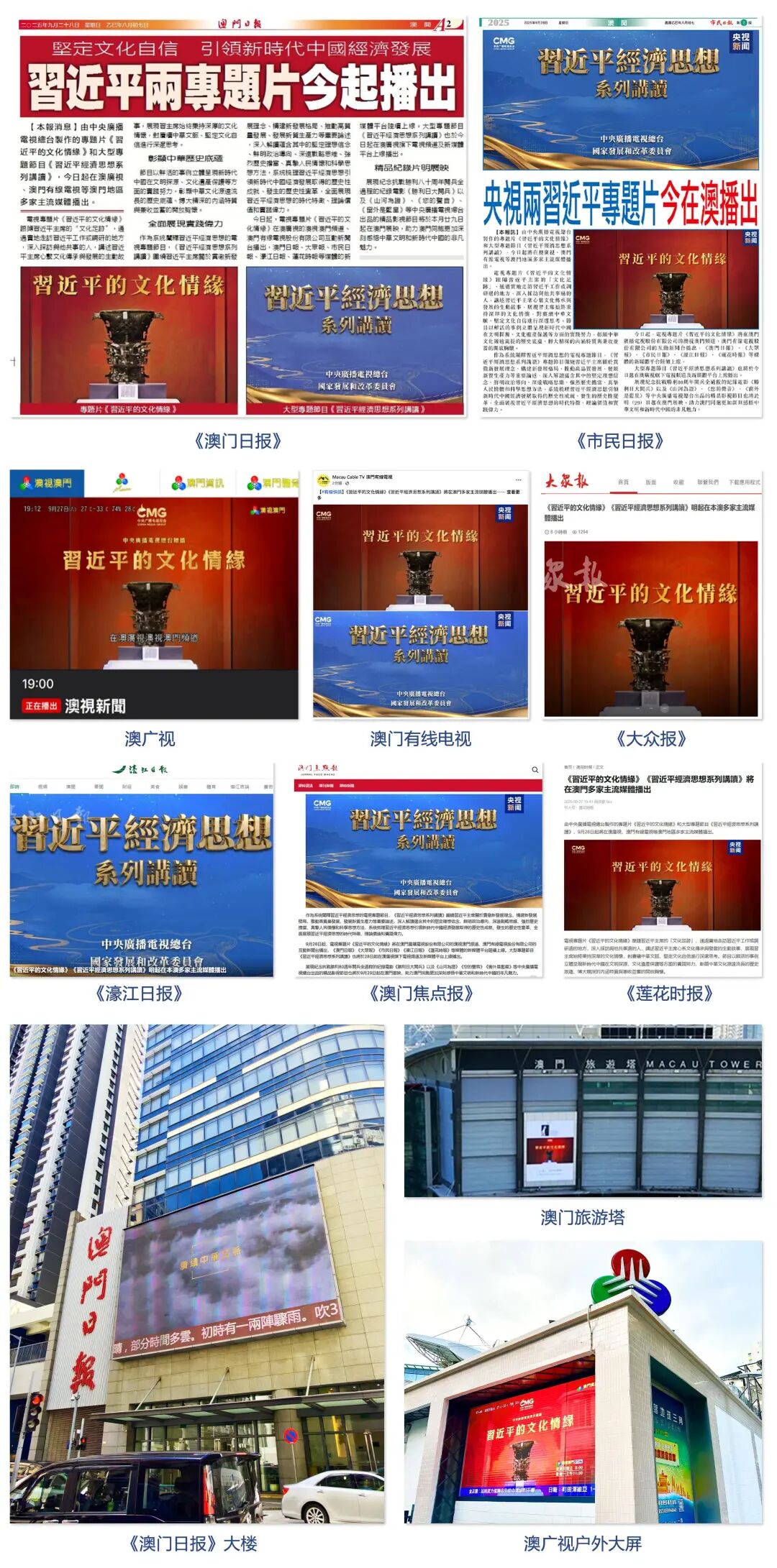 澳门当地主流媒体、户外大屏刊发、播发节目播出相关消息