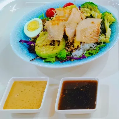鲜虾 / 金枪鱼 / 鸡胸肉谷物碗,食材有层次,营养密度高。