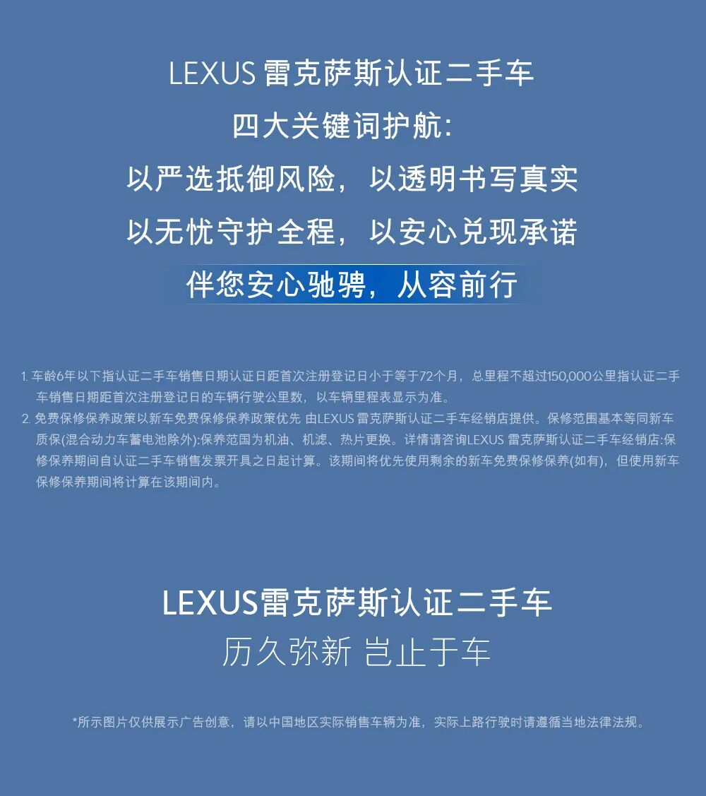 文章内容来源于公众号:LEXUS雷克萨斯认证二手车,点此可查看原文,内容版权归相关企业所有,本网站仅供交流学习。若涉及版权问题或存在侵权情况,请及时与我们联系,我们将第一时间进行删除处理。