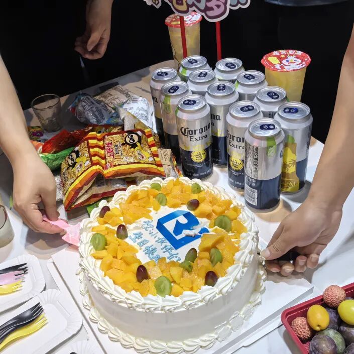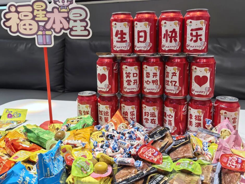 为了让寿星们有一个难忘时刻的同时感受到公司的温暖,运营中心为大家准备了一场氛围感十足的生日会。生日会上的蛋糕、零食、饮品、水果拼盘以及小礼物,每一处细节都藏着金软对寿星们的祝福。