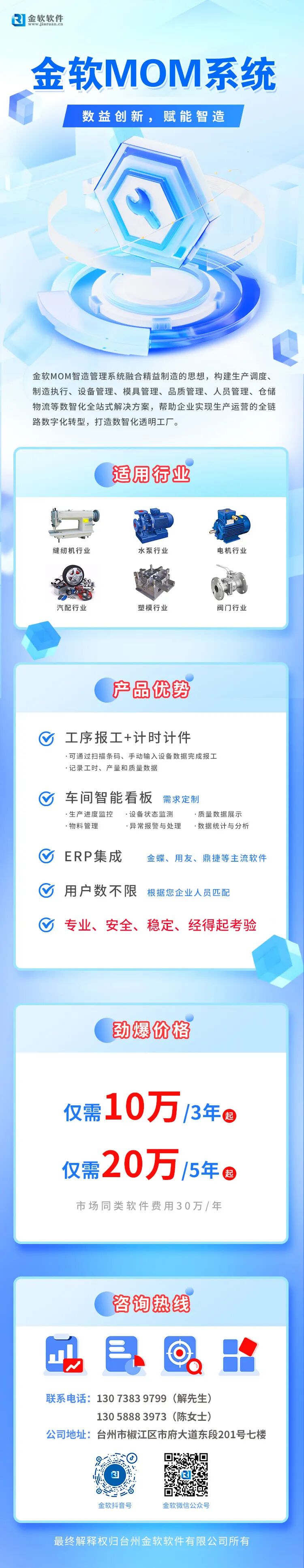 金软MOM系统解决方案以承载工厂智能化、企业数智化应用场景的实现为目标,充分打通设备层、控制层、执行层与营运管理层,聚焦汽摩配件、医药化工、泵与电机、缝制设备、塑料模具、卫浴阀门、植保机械、航天航空等行业深度实践。