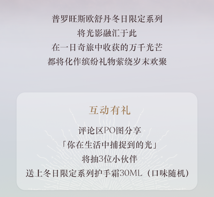 文章内容来源于公众号:普罗旺斯欧舒丹,点此可查看原文,内容版权归相关企业所有,本网站仅供交流学习。若涉及版权问题或存在侵权情况,请及时与我们联系,我们将第一时间进行删除处理。