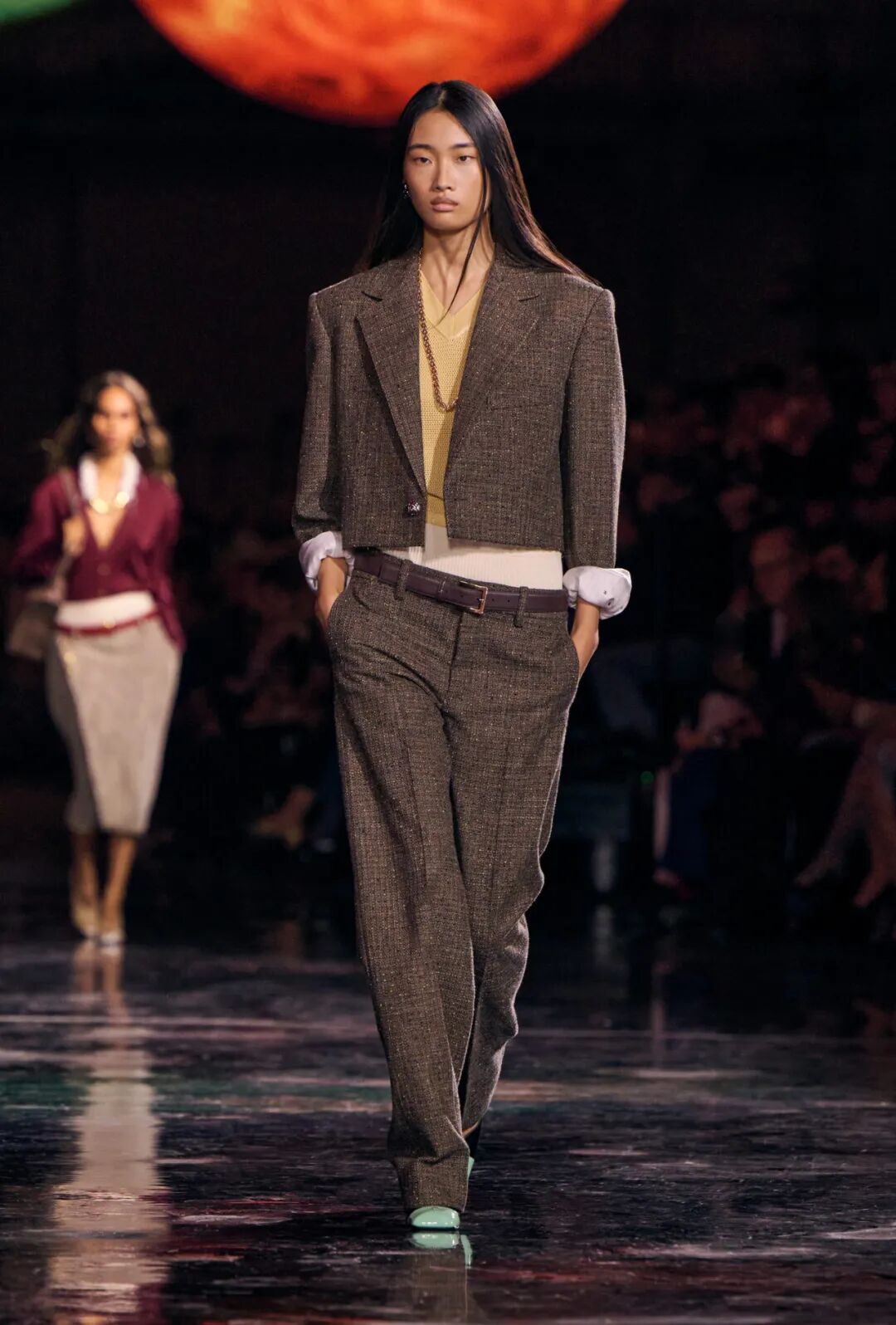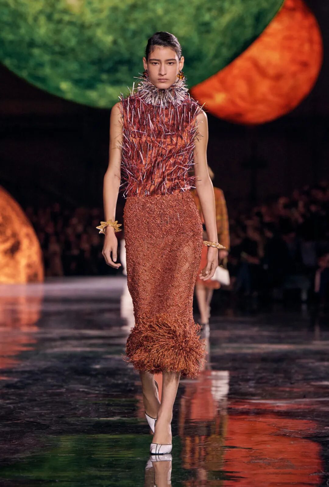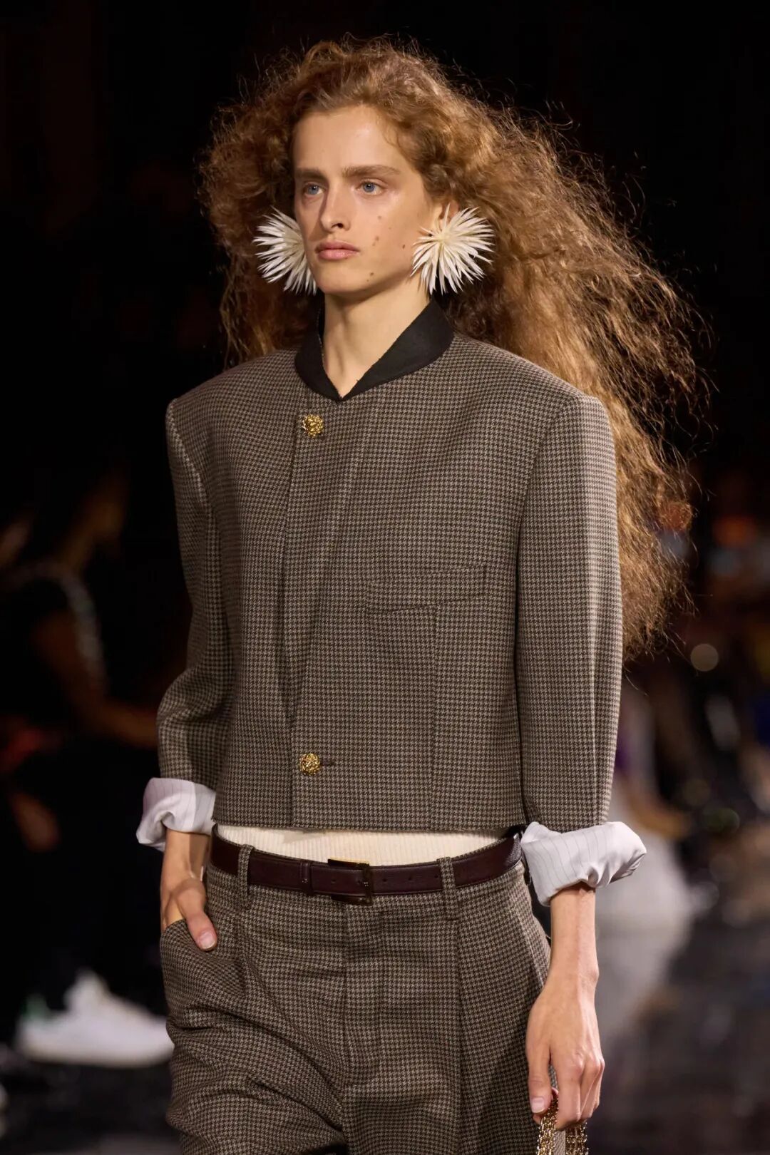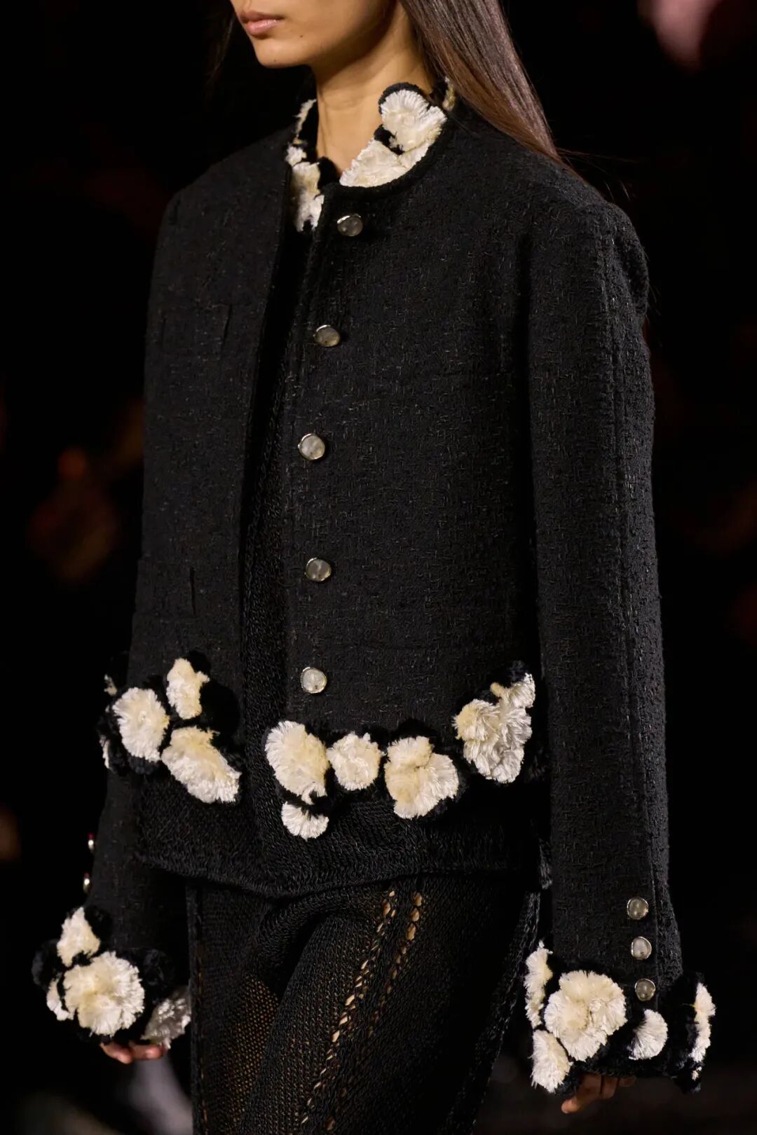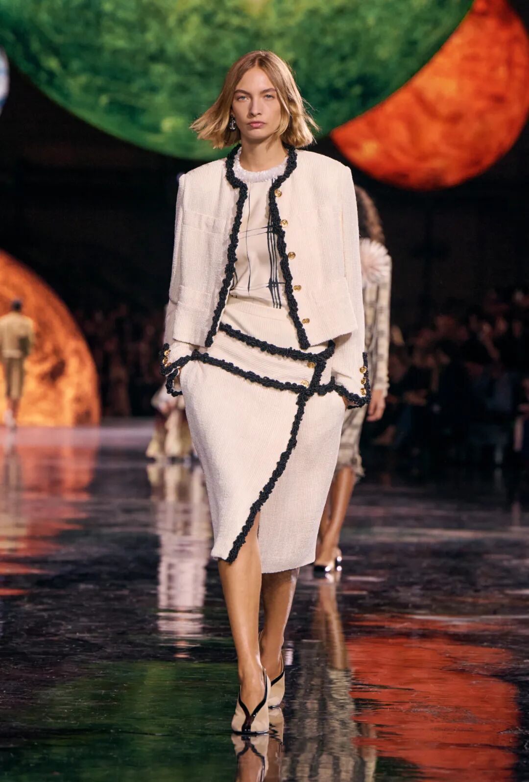 Matthieu Blazy加入CHANEL,这个品牌的时间开始以另一种方式流动。不是延续,也不是断裂,而是以一种更深层的重启——一种关于“如何在当下继续存在”的实验。从这一刻起,CHANEL的未来,不再被定义为“继承谁”而是“如何再次成为世界的一部分”。 2026春夏时装周,我们见证了十多位新创意总监的首秀,Matthieu Blazy的CHANEL首秀在这场“时尚大考”中终于“千呼万唤始出来”,让本季时装周以高潮收束,也让我们愈发感受到创意总监的更替,更像是一场时装范式转换——当许多奢侈品牌还沉迷于“遗产叙事”和“图案重组”时,Matthieu Blazy 把 CHANEL 拽回了现实。 Matthieu Blazy没有仅复刻经典,也没有只延续神话,他拔掉了品牌的安全插头,从“衣服”重新开始:面料、比例、重力、坠感。在一个被复古怀旧与社交媒体滤镜包裹的时代,几乎是一种反叛。 Blazy为整个奢侈品行业打开了一个全新的通道:设计师不必再做档案的守门人,也不必活在社交媒体的滤镜逻辑下。这也意味着接下来几年,大品牌们将不得不重新审视自己:继续卖符号,还是重新造语言? CHANEL 在这一刻,成为了那个临界点。Blazy 没有延续任何人的脚步,他正从零开始,为 CHANEL 构建了一个新的宇宙——一个关于重力、自由与未来的宇宙。 1. 背影的意义:Matthieu Blazy 与 CHANEL 的零重力时刻 那是一张几乎没有时间的照片。黑白的世界里,一个女人背对镜头,头发被剪成近乎几何的短波波头,末梢微微卷起,像羽毛在空气中轻颤。她的肩颈线裸露、细长,皮肤的亮度与背景的白几乎融为一体,唯一的界限是一道柔软的阴影。右上角,孤独的“双 C”悬浮着——像一颗行星,一种信号。 没有珍珠、没有香水、没有斜纹软呢,也没有那种惯常的法式姿态。她什么都没说,却什么都代表。 这便是 Matthieu Blazy 为 CHANEL 留下的第一张图像。由 David Bailey 拍摄,这张照片在公布后引起了短暂的静默——一种集体的屏息。它既不像广告,也不像预告,更像一记无声的宣言:CHANEL 的故事,将从“背影”重新开始。 这张背影既是隐喻,也是策略。它意味着他不打算以传统方式进入 CHANEL 的语言体系,而是先让它归零。那是一种“反品牌”的姿态:在一个被符号与记忆淹没的时代,他选择用沉默取代噪音。随后,品牌寄出了大秀邀请函——附上一条银色小房子吊坠项链。吊坠的形状是 康朋街31号 31 号,那座 CHANEL 的精神原点。俨然,这枚小吊坠与那张背影一样,暗示了一种行动:离开、重启、寻找新的引力。 当 Blazy 第一次走进 CHANEL 档案馆时,Blazy看见那些保存完好的样衣、缝线、刺绣样本、Karl Lagerfeld 的草图,全都散发着强烈的既视感——你需要一个梦想,讲故事,”(The Business of Fashion,2025,Para.23)。于是他停止前往档案馆,转而去读书——旧信件、早期访谈与传记。在文字中,他遇见了另一个 Gabrielle。 就在那段时间,Blazy 偶然看到几张 Gabrielle 穿着男式衬衫的老照片——宽松、洁白、未经造型,布料在她的身体上自然坠下,既中性又带着一种无意的性感。那一刻,他找到了线索。于是他与位于巴黎旺多姆广场的 Charvet 合作,重制了一系列衬衫。每件作品的内侧都缝着 “Tissu et technique par Charvet” 的标签,用 1920 年代 CHANEL 标签上略带颤动的手写字体刺绣。 这件衬衫成为他理解 CHANEL 的真正起点。它让他重新看见一种被遗忘的呼吸方式——一种从日常出发的自由。 在 Blazy 看来,或许那是 CHANEL 最本质的姿态:将私人情感转化为风格,将爱变成一种逃逸的可能。 而这场逃逸,在秀场上被放大成宇宙。 当晚,大皇宫的穹顶被改造成一个行星系统:十二颗不同颜色的星球缓缓旋转,地面漆成深蓝,光线游移如液体。Blazy 称之为“Universal(一个宇宙)”——一个无边的空间,象征 CHANEL 从巴黎出发,进入普世维度。 这些星球不是装饰,而是隐喻。红色代表激情与力量,铜色呼应 Gabrielle 的幸运符麦穗,乳白色由 LEMARIÉ山茶花及羽饰坊以羽饰拼制——柔软、脆弱,却永恒。每一颗星球都是一个时代的碎片,一段记忆的再生。 第一位模特走出——一件未封边的灰色西装外套,内衬针织布料,下搭宽松男裤,腰间露出轻微的松弛,这是一套在 CHANEL 语言下的西装。Blazy 将这一章节命名为 “Paradox(一个矛盾)”,在他看来,CHANEL 的魅力从不在完美,而在冲突:理性与欲望、秩序与反叛。 2. 从戏服到衣橱——剪刀落下的矛盾与白昼 当 Blazy 决定以 “Paradox” 开启这场旅程时,他真正想做的,不是展示一个主题,而是去揭开 CHANEL 的最初矛盾。那种在刚与柔、现实与幻想之间的张力,从 Gabrielle 开始,就从未停止过。她既是那个打破束缚的现代女性,又是浪漫情感的囚徒;既渴望像男人一样自由,又从不否认女性的诱惑力。Blazy 在这一幕中,回到了这个最原始的矛盾,并让它重新闪光。 “她说过,‘没有时间做一成不变的事,工作需要时间,爱情需要时间,就没有时间做其他的了。 ’”Blazy 在采访中重复这句话时,神情专注,几乎像在自我提醒。 在试装的第一天,他拿起自己的西装外套,现场剪下领口,重新裁到 CHANEL 的比例。所有人都屏息,工作室的空气瞬间凝固。那件粗粝、未处理的外套,带有男性肩线的灰色夹克,边缘依旧保留着生硬的剪口,与开叉半裙搭配,重量由一条细链固定在下摆处——CHANEL 经典外套的隐形结构,也被保留了下来。它既是 Gabrielle 的,也是 Matthieu 的。 “那就是矛盾本身,”