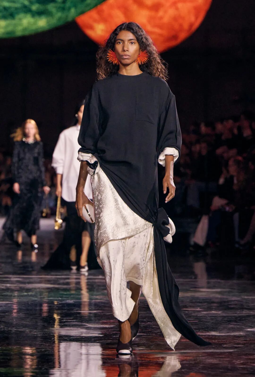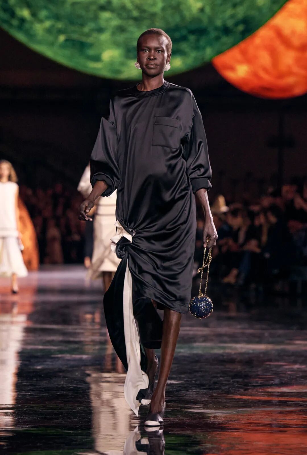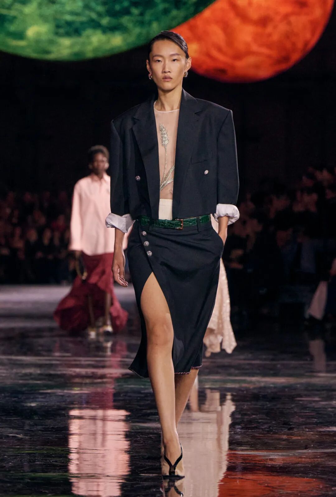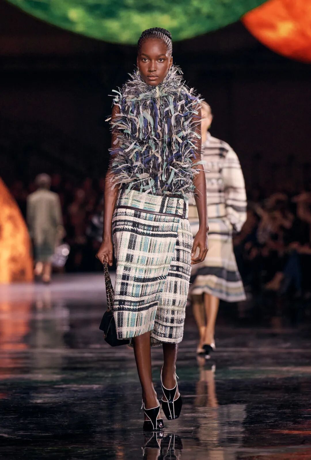 Matthieu Blazy加入CHANEL,这个品牌的时间开始以另一种方式流动。不是延续,也不是断裂,而是以一种更深层的重启——一种关于“如何在当下继续存在”的实验。从这一刻起,CHANEL的未来,不再被定义为“继承谁”而是“如何再次成为世界的一部分”。 2026春夏时装周,我们见证了十多位新创意总监的首秀,Matthieu Blazy的CHANEL首秀在这场“时尚大考”中终于“千呼万唤始出来”,让本季时装周以高潮收束,也让我们愈发感受到创意总监的更替,更像是一场时装范式转换——当许多奢侈品牌还沉迷于“遗产叙事”和“图案重组”时,Matthieu Blazy 把 CHANEL 拽回了现实。 Matthieu Blazy没有仅复刻经典,也没有只延续神话,他拔掉了品牌的安全插头,从“衣服”重新开始:面料、比例、重力、坠感。在一个被复古怀旧与社交媒体滤镜包裹的时代,几乎是一种反叛。 Blazy为整个奢侈品行业打开了一个全新的通道:设计师不必再做档案的守门人,也不必活在社交媒体的滤镜逻辑下。这也意味着接下来几年,大品牌们将不得不重新审视自己:继续卖符号,还是重新造语言? CHANEL 在这一刻,成为了那个临界点。Blazy 没有延续任何人的脚步,他正从零开始,为 CHANEL 构建了一个新的宇宙——一个关于重力、自由与未来的宇宙。 1. 背影的意义:Matthieu Blazy 与 CHANEL 的零重力时刻 那是一张几乎没有时间的照片。黑白的世界里,一个女人背对镜头,头发被剪成近乎几何的短波波头,末梢微微卷起,像羽毛在空气中轻颤。她的肩颈线裸露、细长,皮肤的亮度与背景的白几乎融为一体,唯一的界限是一道柔软的阴影。右上角,孤独的“双 C”悬浮着——像一颗行星,一种信号。 没有珍珠、没有香水、没有斜纹软呢,也没有那种惯常的法式姿态。她什么都没说,却什么都代表。 这便是 Matthieu Blazy 为 CHANEL 留下的第一张图像。由 David Bailey 拍摄,这张照片在公布后引起了短暂的静默——一种集体的屏息。它既不像广告,也不像预告,更像一记无声的宣言:CHANEL 的故事,将从“背影”重新开始。 这张背影既是隐喻,也是策略。它意味着他不打算以传统方式进入 CHANEL 的语言体系,而是先让它归零。那是一种“反品牌”的姿态:在一个被符号与记忆淹没的时代,他选择用沉默取代噪音。随后,品牌寄出了大秀邀请函——附上一条银色小房子吊坠项链。吊坠的形状是 康朋街31号 31 号,那座 CHANEL 的精神原点。俨然,这枚小吊坠与那张背影一样,暗示了一种行动:离开、重启、寻找新的引力。 当 Blazy 第一次走进 CHANEL 档案馆时,Blazy看见那些保存完好的样衣、缝线、刺绣样本、Karl Lagerfeld 的草图,全都散发着强烈的既视感——你需要一个梦想,讲故事,”(The Business of Fashion,2025,Para.23)。于是他停止前往档案馆,转而去读书——旧信件、早期访谈与传记。在文字中,他遇见了另一个 Gabrielle。 就在那段时间,Blazy 偶然看到几张 Gabrielle 穿着男式衬衫的老照片——宽松、洁白、未经造型,布料在她的身体上自然坠下,既中性又带着一种无意的性感。那一刻,他找到了线索。于是他与位于巴黎旺多姆广场的 Charvet 合作,重制了一系列衬衫。每件作品的内侧都缝着 “Tissu et technique par Charvet” 的标签,用 1920 年代 CHANEL 标签上略带颤动的手写字体刺绣。 这件衬衫成为他理解 CHANEL 的真正起点。它让他重新看见一种被遗忘的呼吸方式——一种从日常出发的自由。 在 Blazy 看来,或许那是 CHANEL 最本质的姿态:将私人情感转化为风格,将爱变成一种逃逸的可能。 而这场逃逸,在秀场上被放大成宇宙。 当晚,大皇宫的穹顶被改造成一个行星系统:十二颗不同颜色的星球缓缓旋转,地面漆成深蓝,光线游移如液体。Blazy 称之为“Universal(一个宇宙)”——一个无边的空间,象征 CHANEL 从巴黎出发,进入普世维度。 这些星球不是装饰,而是隐喻。红色代表激情与力量,铜色呼应 Gabrielle 的幸运符麦穗,乳白色由 LEMARIÉ山茶花及羽饰坊以羽饰拼制——柔软、脆弱,却永恒。每一颗星球都是一个时代的碎片,一段记忆的再生。 第一位模特走出——一件未封边的灰色西装外套,内衬针织布料,下搭宽松男裤,腰间露出轻微的松弛,这是一套在 CHANEL 语言下的西装。Blazy 将这一章节命名为 “Paradox(一个矛盾)”,在他看来,CHANEL 的魅力从不在完美,而在冲突:理性与欲望、秩序与反叛。 2. 从戏服到衣橱——剪刀落下的矛盾与白昼 当 Blazy 决定以 “Paradox” 开启这场旅程时,他真正想做的,不是展示一个主题,而是去揭开 CHANEL 的最初矛盾。那种在刚与柔、现实与幻想之间的张力,从 Gabrielle 开始,就从未停止过。她既是那个打破束缚的现代女性,又是浪漫情感的囚徒;既渴望像男人一样自由,又从不否认女性的诱惑力。Blazy 在这一幕中,回到了这个最原始的矛盾,并让它重新闪光。 “她说过,‘没有时间做一成不变的事,工作需要时间,爱情需要时间,就没有时间做其他的了。 ’”Blazy 在采访中重复这句话时,神情专注,几乎像在自我提醒。 在试装的第一天,他拿起自己的西装外套,现场剪下领口,重新裁到 CHANEL 的比例。所有人都屏息,工作室的空气瞬间凝固。那件粗粝、未处理的外套,带有男性肩线的灰色夹克,边缘依旧保留着生硬的剪口,与开叉半裙搭配,重量由一条细链固定在下摆处——CHANEL 经典外套的隐形结构,也被保留了下来。它既是 Gabrielle 的,也是 Matthieu 的。 “那就是矛盾本身,”