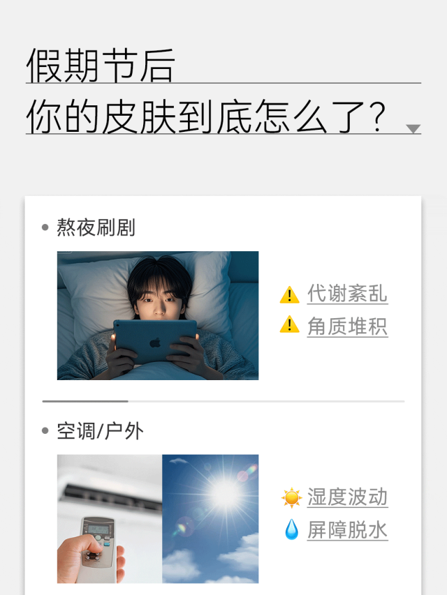 摘要:熬出来的粗糙、吃出来的红痘、闷出来的泛红,皮肤也得节后“收心”啦!